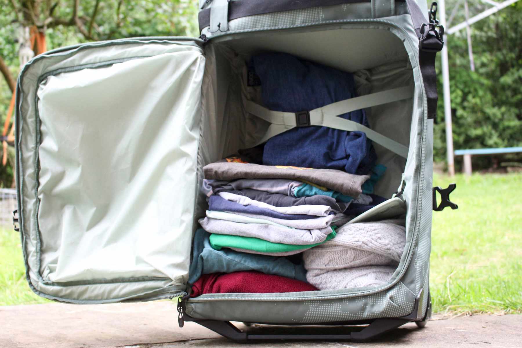 While the light weight of the Evoc World Traveller and quality appearance had me excited at the prospect of using it, the reality was a little perplexing and suggested a new approach to packing. The illustrations on the website show it being used like a portable wardrobe, with clothes carefully folded as you might/would on your shelves at home, and shoes and wash bag up in the top section. Which is all very well and admirable, but I can’t remember ever having managed to pack lightly enough that that kind of neat folding would really work. But, if you’ve been looking for a portable wardrobe, this is the bag for you. Please could you come round to my house and pack for all my future trips?