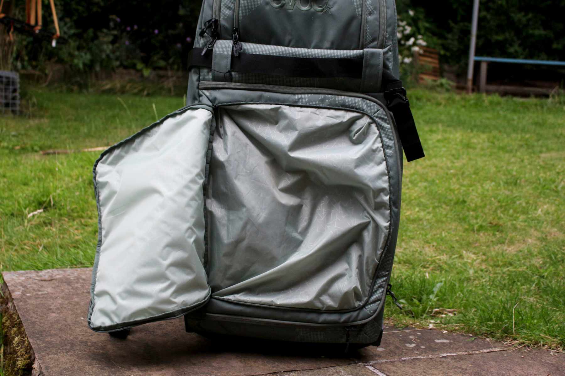 Towing the Evoc World Traveller along is a breeze, and the handles are in all the right places for hefting it into luggage racks. It’s showing no sign of any damage, and all the signs are that the construction is of excellent quality.
