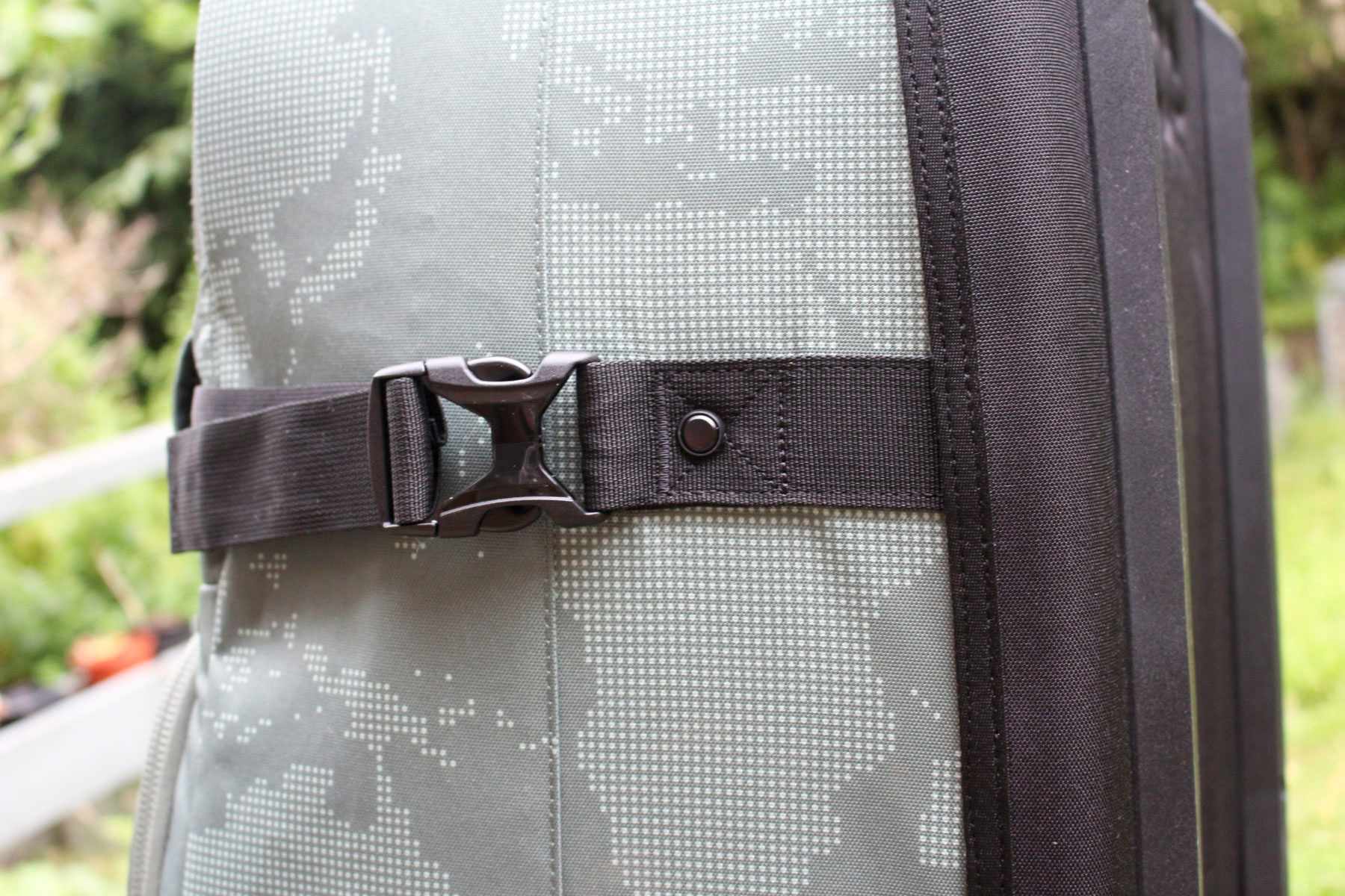 I’ve found that it’s not a very stuffable suitcase – which makes sense if you want to be able to get things in and out of your wardrobe. As a traditional stuff-it-full suitcase, the fixed cross piece provides an inflexible area that means it’s like stuffing things into two separate smaller cases, rather than one huge one. The compression band seemed to help a little on the lower section, but positioned as it is across the fixed section, the upper band didn’t really seem to have a purpose beyond carrying a skateboard (which the straps are designed to allow you to do).