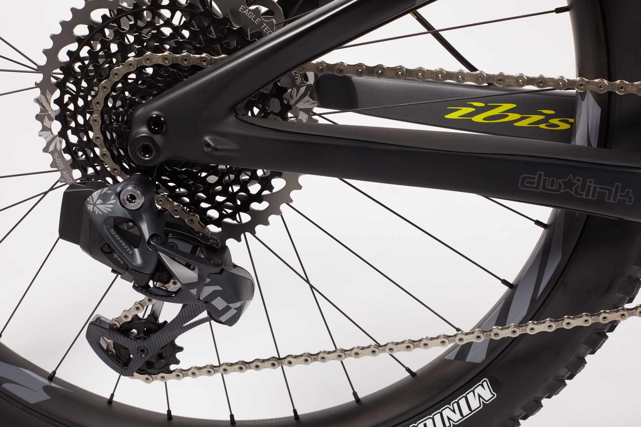 The suspension and bike layout has also taken a cue from the Ripmo and Ripley. The Ripmo was the first Ibis to drop sealed bearings in favour of Igus bushings for the lower link (which doesn’t move that much) where bushings make sense, while keeping bearings for the greater arc of the upper link. This has apparently seen zero failures in the field with the nearly two year old Ripmo, so the HD5 gets the same treatment. Regardless, the bushings get a lifetime replacement warranty, while the frame gets a seven year warranty.