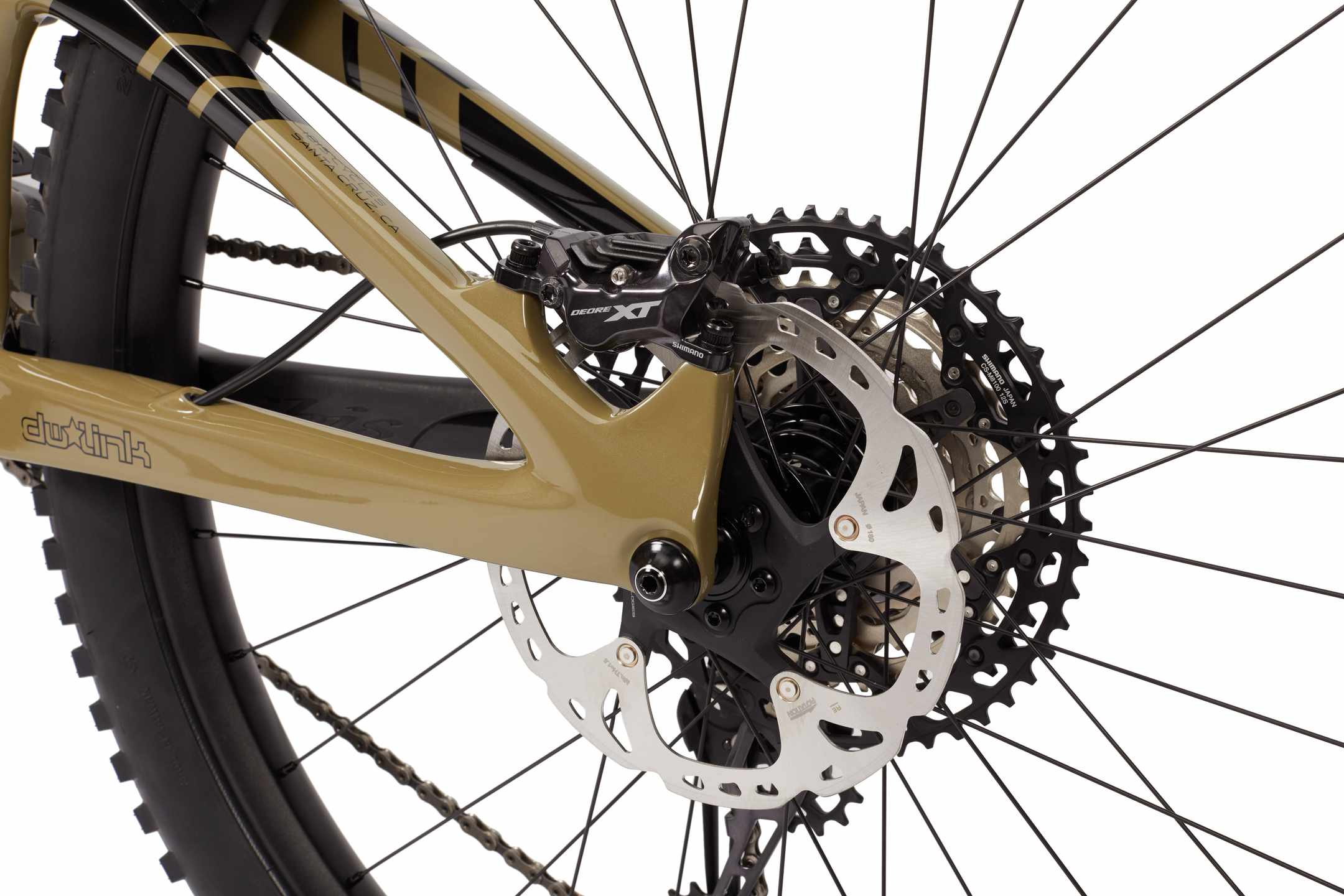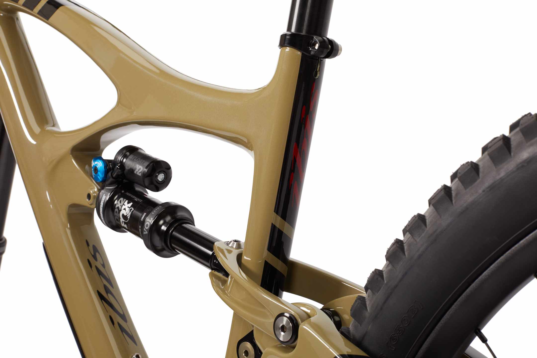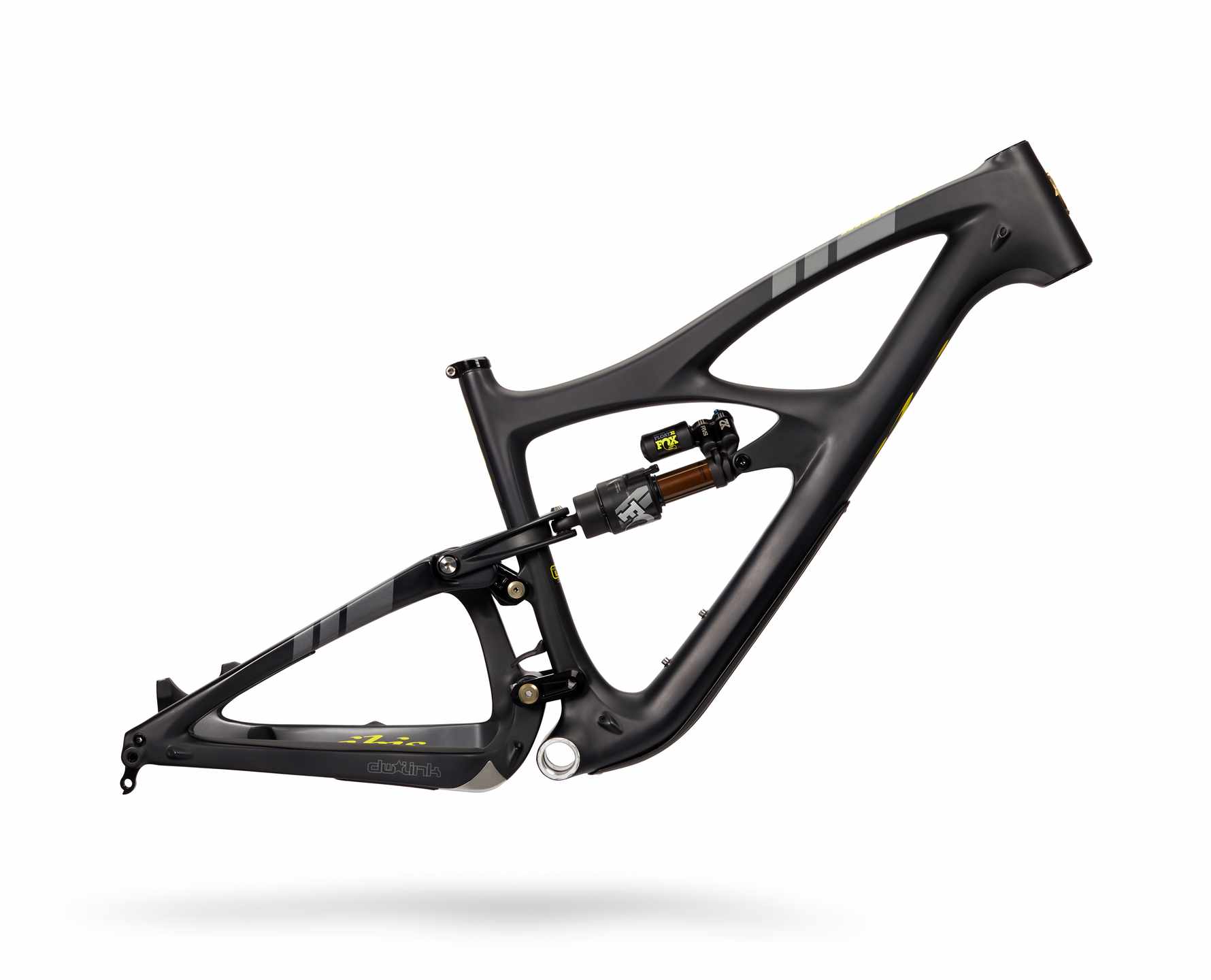 For a start, the fork travel has gone up (compared to the HD4) by 10mm to 170mm, while rear travel is now 153mm. And, although that sounds like a random number, it’s the vertical travel that a 170mm fork goes through under full compression (as it’s going diagonally, see?) – so Ibis maintains that the bike actually has balanced travel, front and rear.