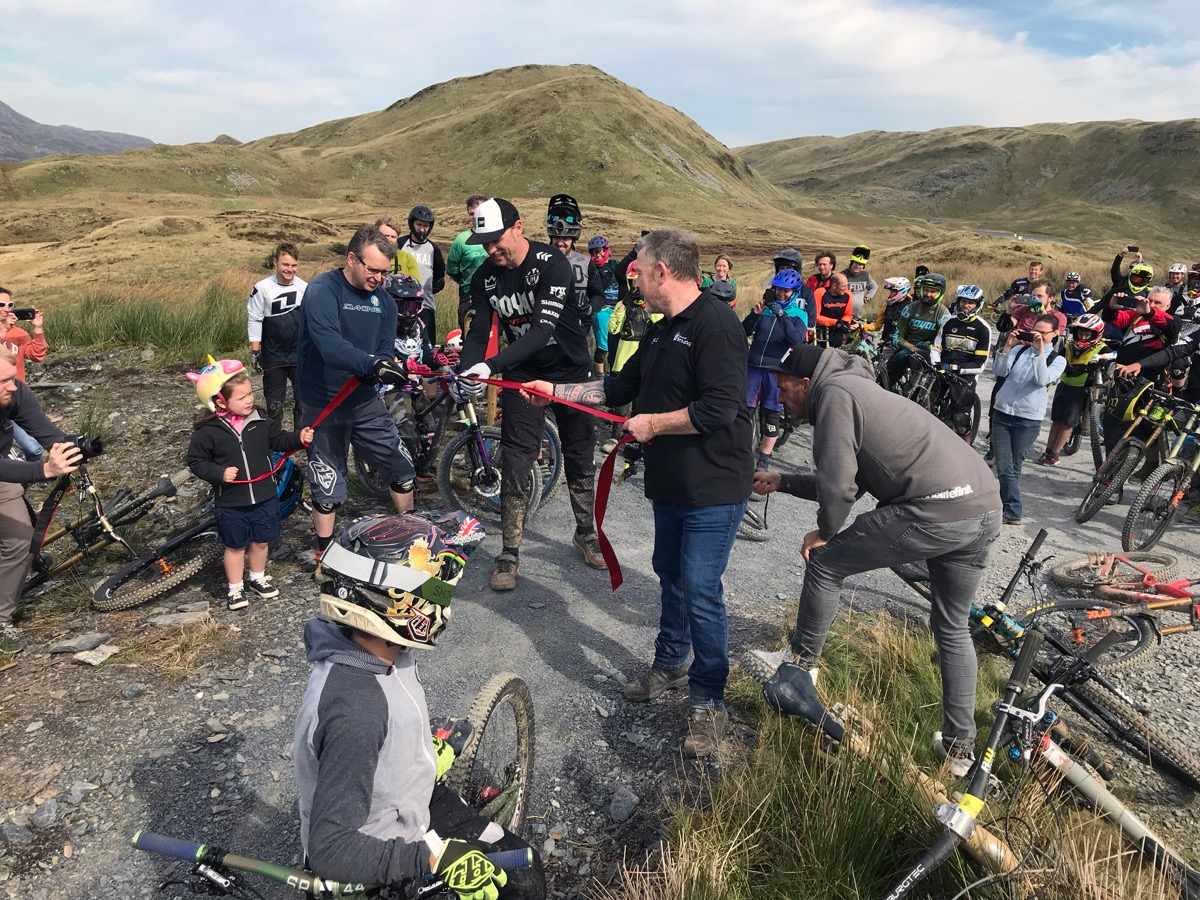 Saturday saw the official launch of the new trails with a jetlagged Steve Peat cutting the ribbon before a “it’s definitely not a race” race down “Detonator” with a Le Mans start and Peaty leading us out. There wasn’t really anywhere to pass but that didn’t stop people trying. Check out the helmet cam here and the dude trying a sneaky line just after the 4-minute mark!