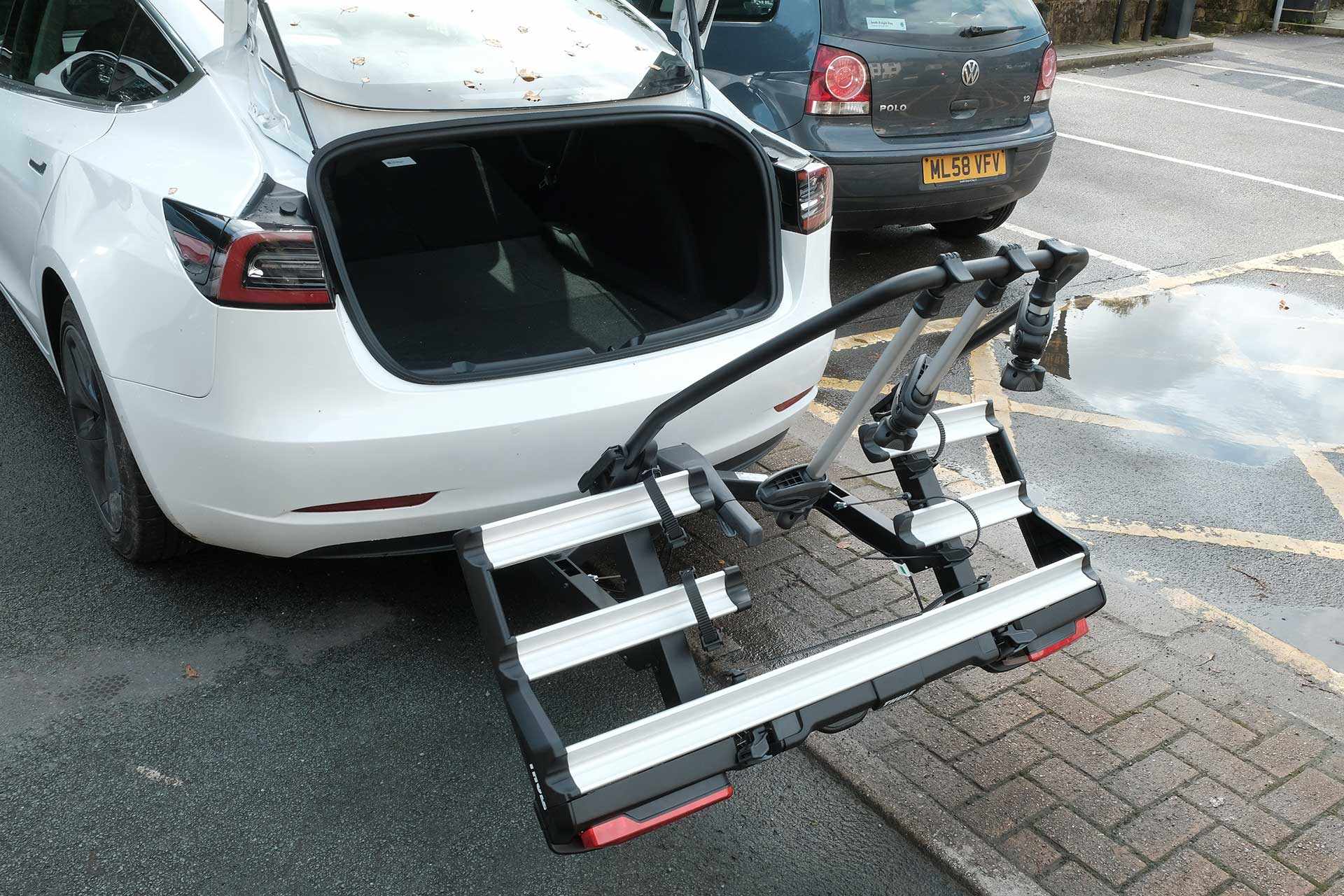 There is a fourth bike adaptor tray that bolts on, but I’d only use it for tacking on a kids’ bike, rather than cantilevering a great bike suspension bike out the back…