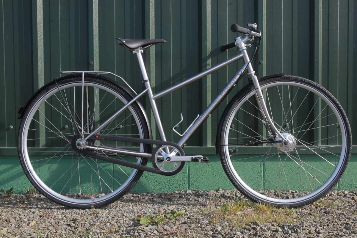The focus of development to date has been on creating four frames in 20/24/26in and 700C wheel sizes that will last the desired 50 years and meet the end of life recycling requirements. A paintless finish was required because paint gets shabby quickly, and stripping and respraying adds both financial and environmental cost. Titanium was dismissed as an option for being too environmentally damaging at the point of extraction, with stainless steel offering recycled options at both the start and end of life. Welding is TIG so that there is no need for the addition of brass – joining mixed materials compromises end of life recycling, and the argon used in it is almost benign. Initially a recycled Reynolds 304 steel from Sheffield was used, giving great ‘local’ credentials, however the raw material was too inconsistent and frames are now built from a mixture of Reynolds 304 steel and 921 tubing. It’s not a perfect UK based or circular solution, but the new material comes from mines in Germany and the processing is done in Scandinavia, so it’s not crossing whole continents.