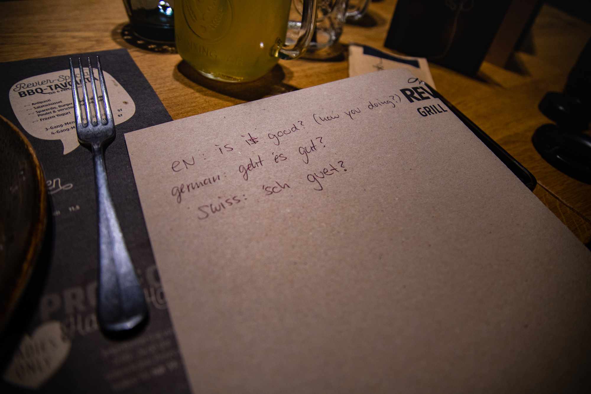 “’Sch guet” Swiss for Alright my lover/babs/mate etc. Essentially, ‘how you doing?’