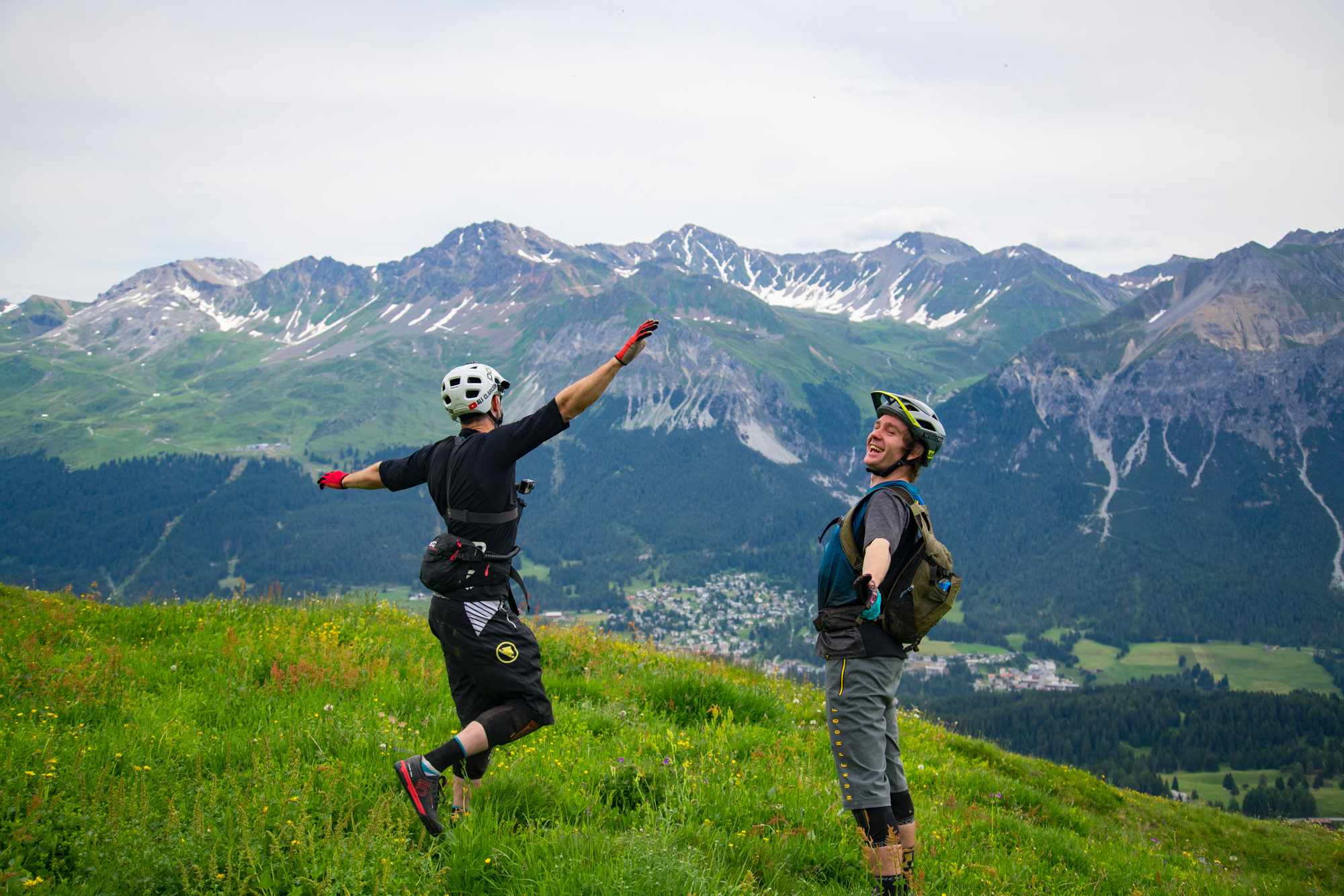 One of our riders was fully into the Sound of Music setup, the other wasn’t. Spot who went full ham above Lenzerheide.