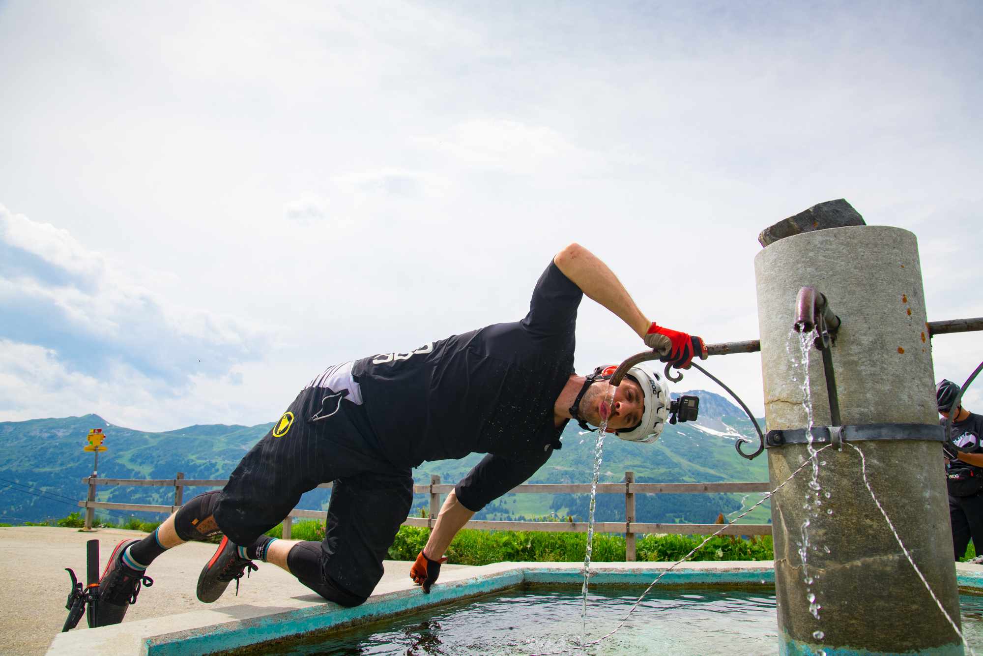 Off the back of Madrisa in Davos, the streams are plentiful, so a 3 litre bladder is no required. Ali found a toad but it wasn’t his prince, so he just refilled on water instead.