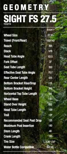 There is also a ‘Youth’ model, which has an alloy frame and comes in a single size, with 27.5in wheels. You get 10mm less travel at each end. The Sight FS 27.5 Youth spec, priced at £2,295, is as follows: