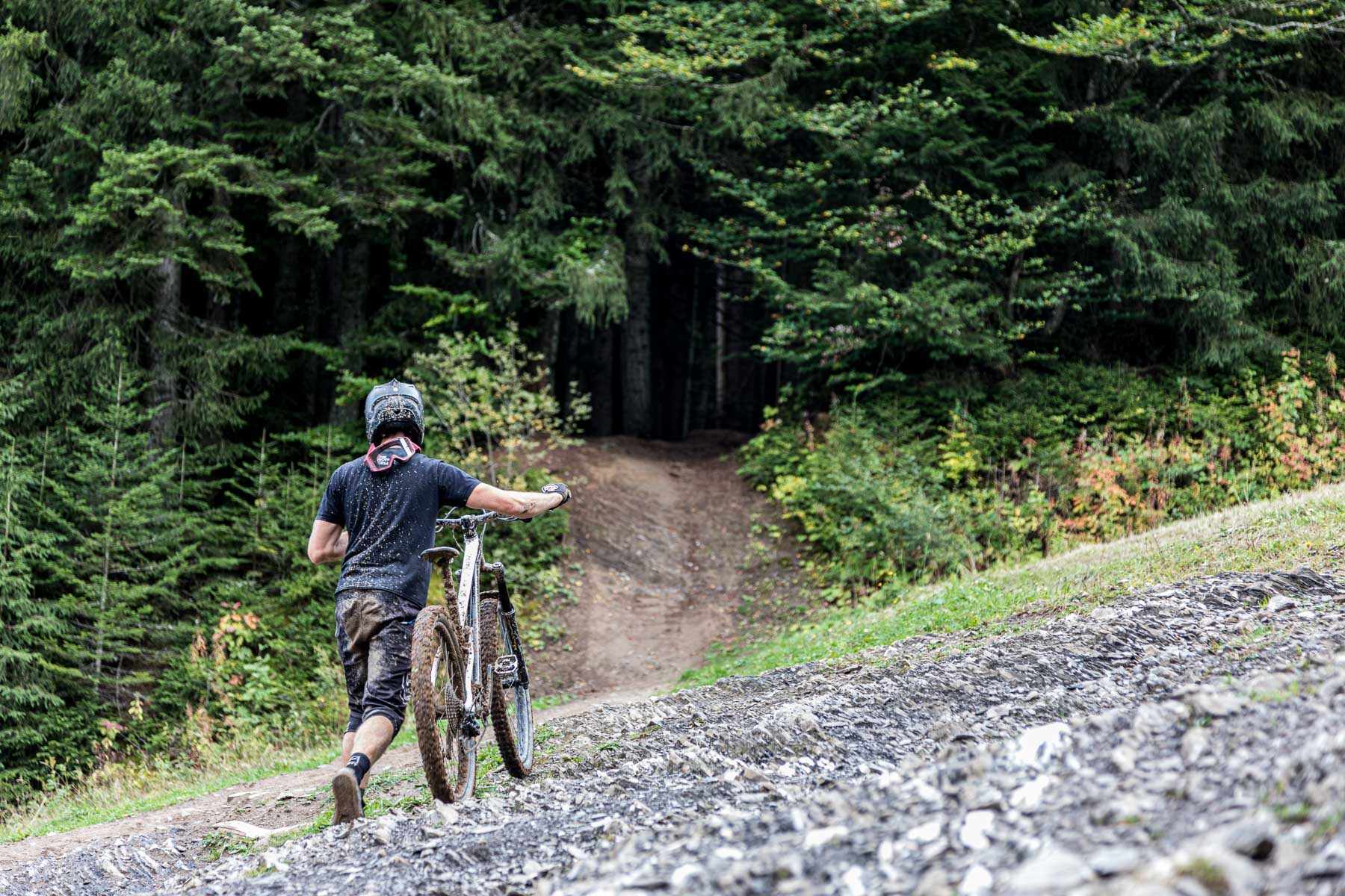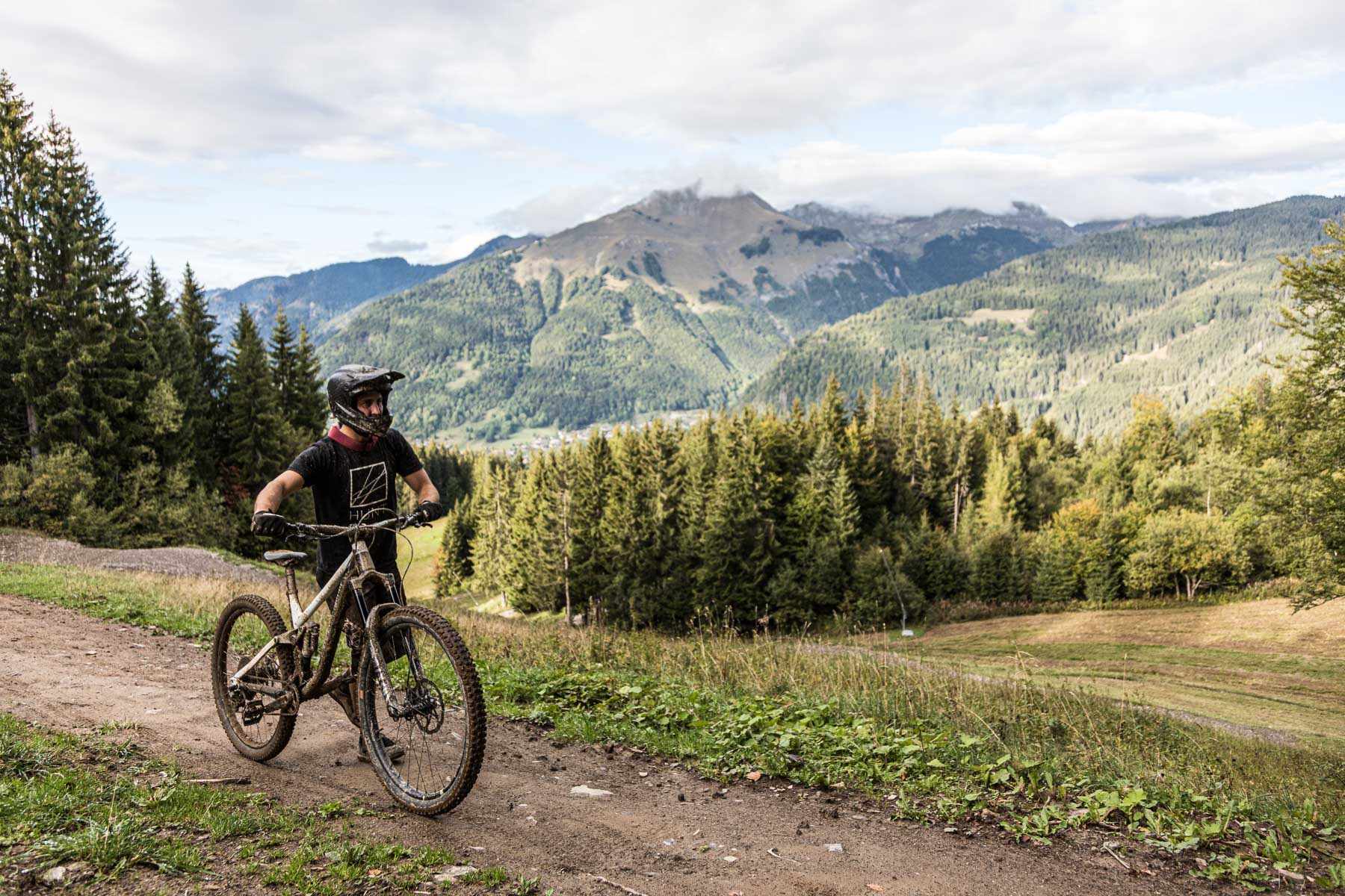 Liam was given the bike for four days, before it had to be taken back to the UK for further testing. With only a few dry and dusty cutting laps on the new steed prepping for the task ahead, the heavens opened up and unloaded some classic Morzine rain storms for days two and four of the challenge. Frustrated, Liam knew this would impact the times, but in hindsight it was the perfect opportunity to see how times compared in the both the wet and dry – while also making for a more exciting challenge.