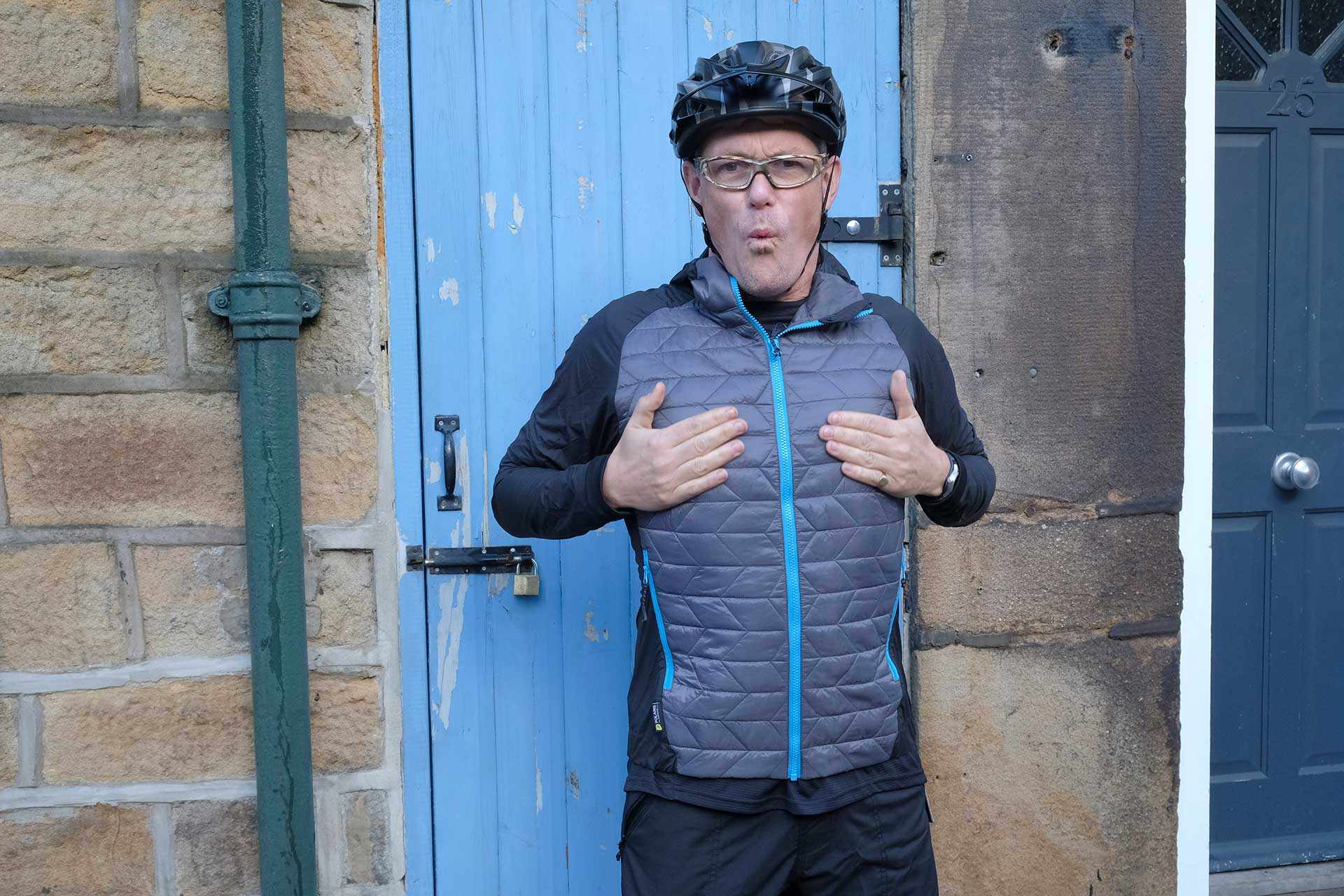 Adhering to the theory of keeping your core warm, this jacket is insulated and windproof in the body, but has lightweight arms and hood so you don’t get too hot when pedalling. The hood will fit under your helmet on ear chilling days, but is light enough to be tucked out the way when not in use. It’s a lightweight jacket with more coverage than a gilet, that you could carry with you stuffed into your pack just in case.