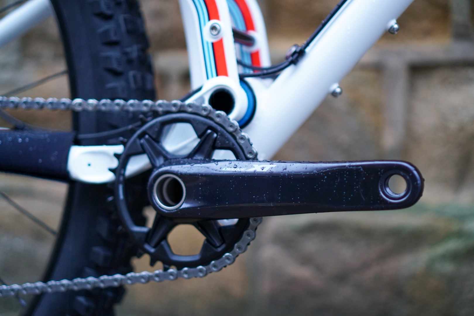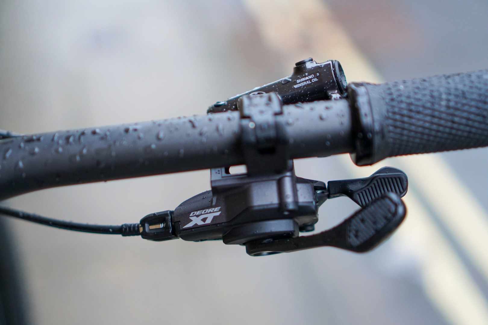 Shimano XT has been used to build up the steel full-susser. This is the latest 1 x 12 Shimano XT groupset complete with brakes, new 12-speed cassette, and everything else to move that chain around and stop the wheels. Andi has already put in a fair amount of time on 1 x 12 SLX and is keen to see how the workhorse XT compares.