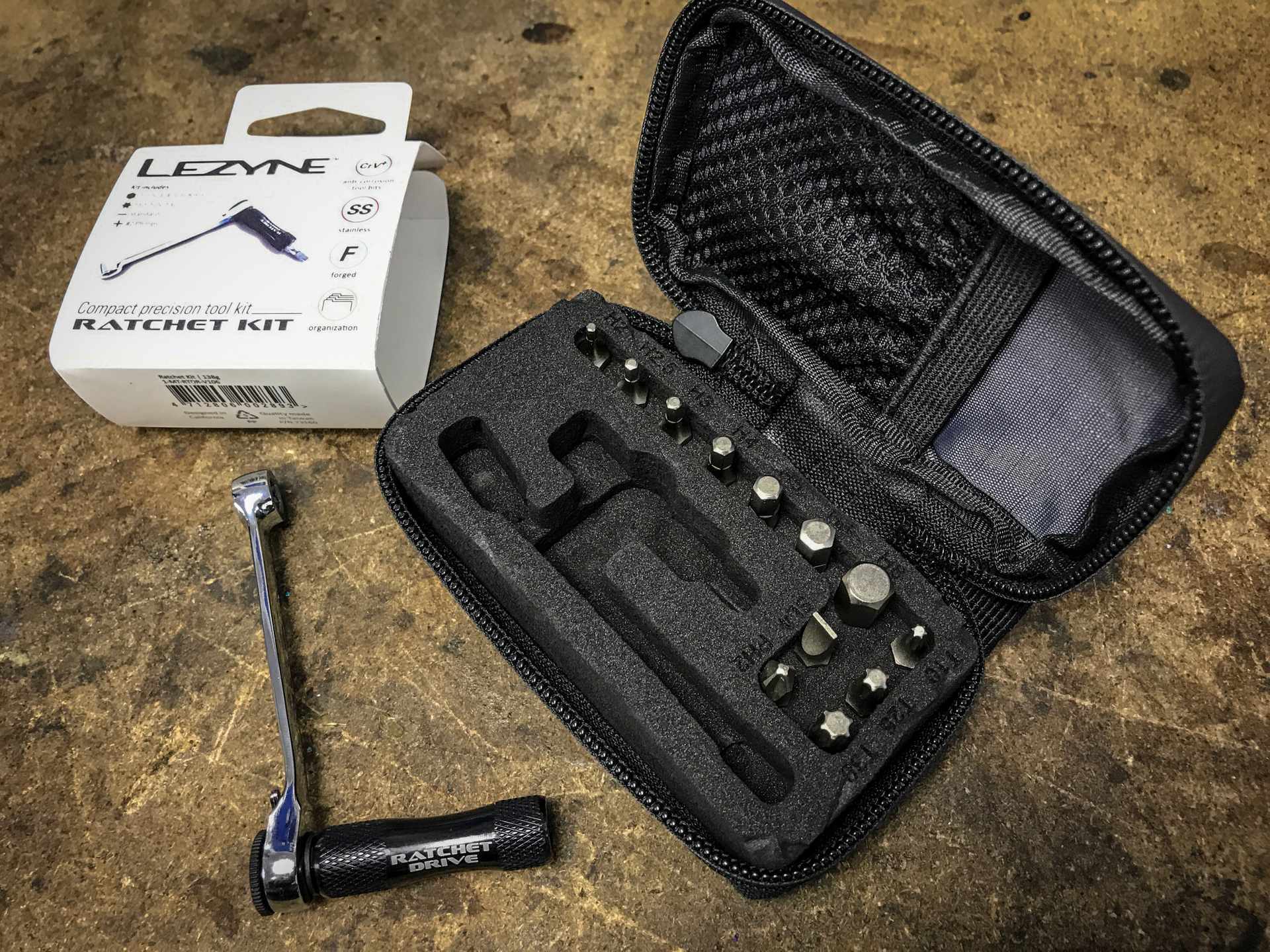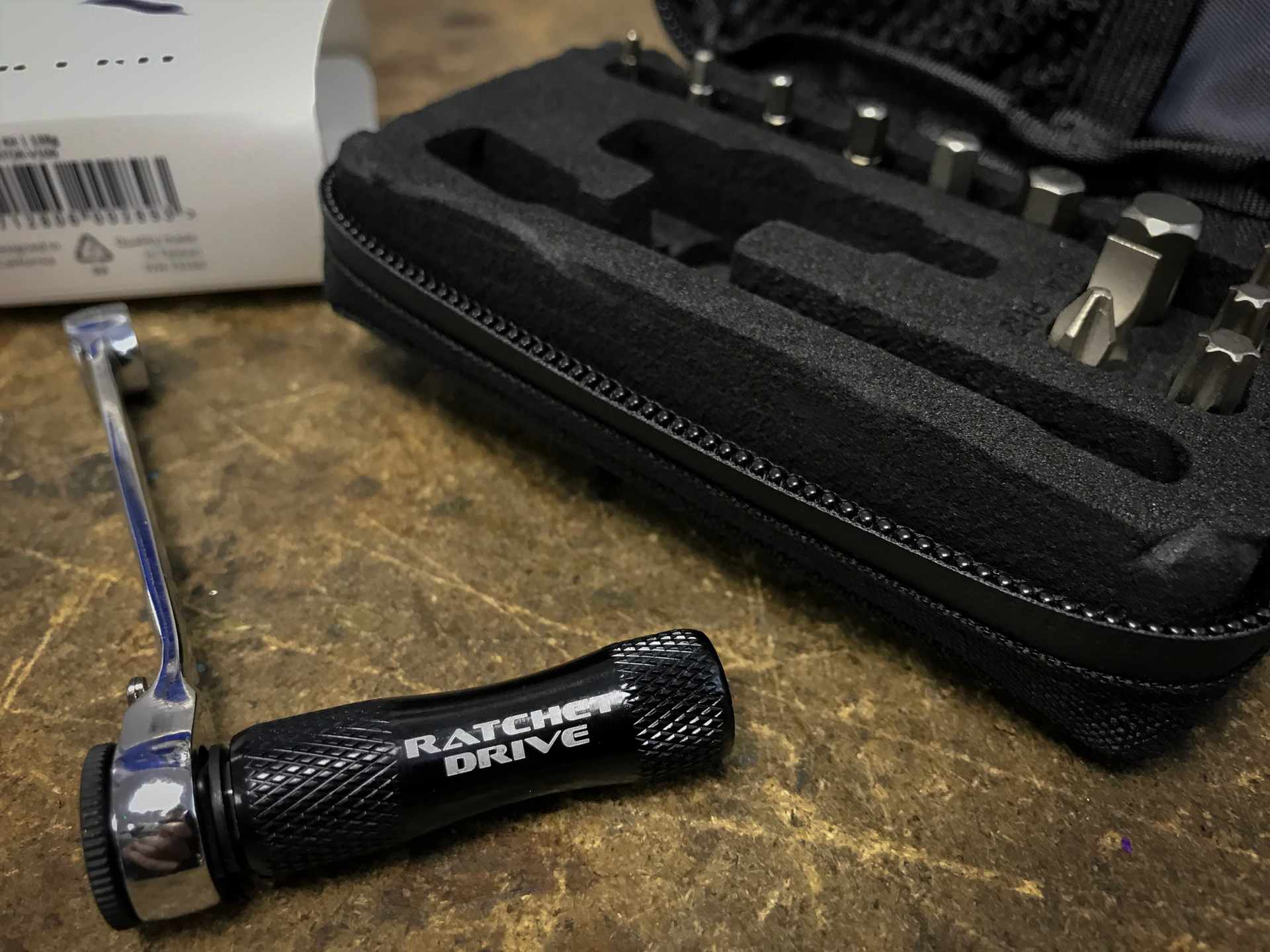 A ratchet kit in a handy pouch so you can have it with you at all times. The nifty little kit has got you covered for: Hex: 2, 2.5, 3, 4, 5, 6, 8mm; Torx: T10, T25, T30; and Phillips and Flathead bits.