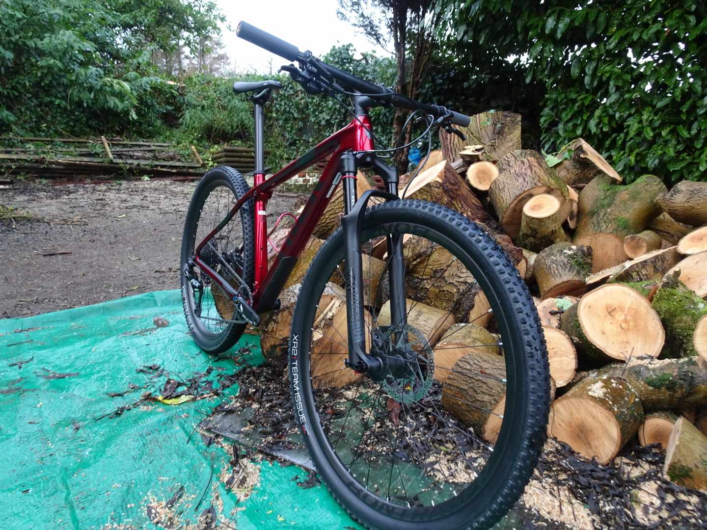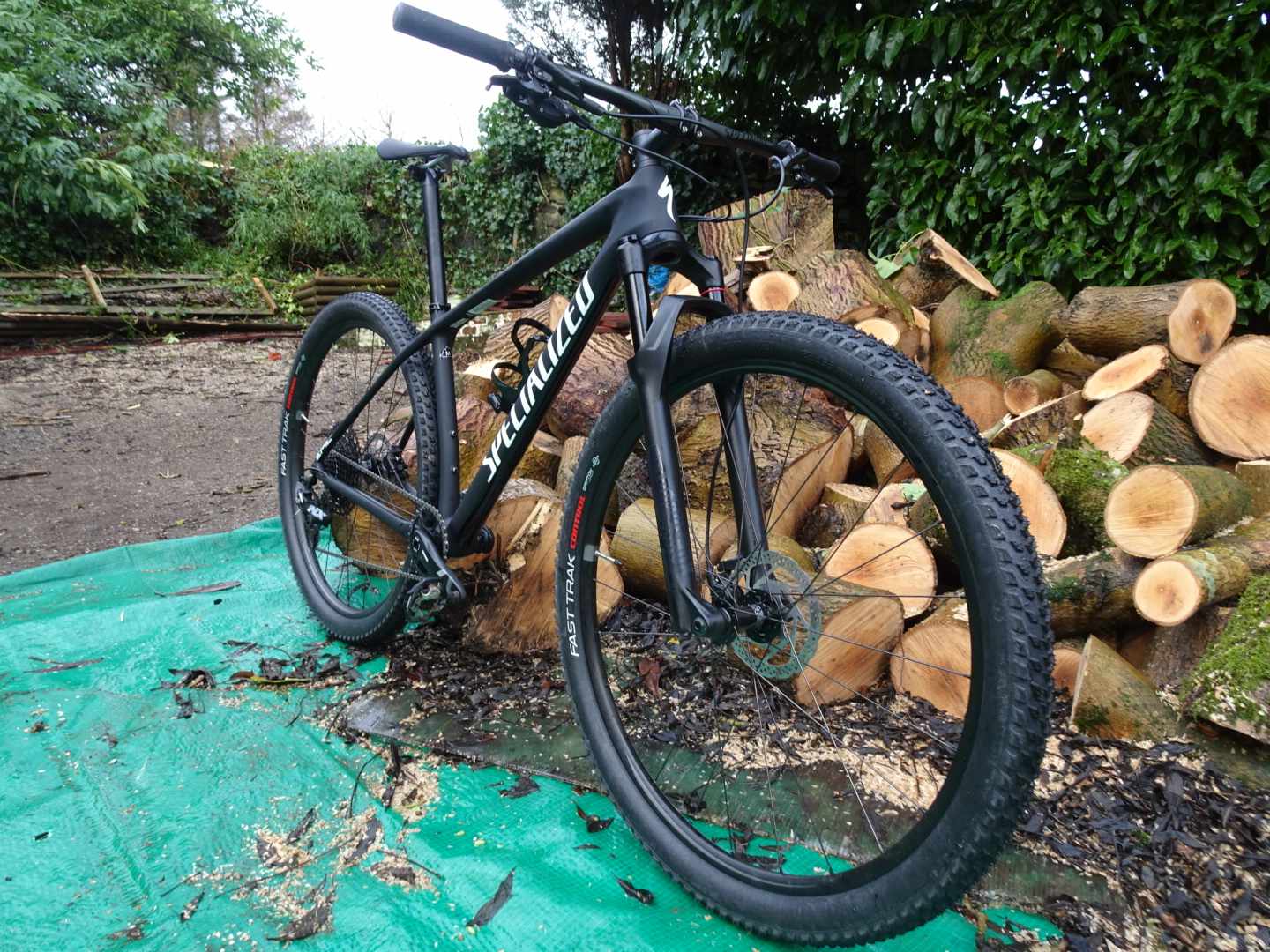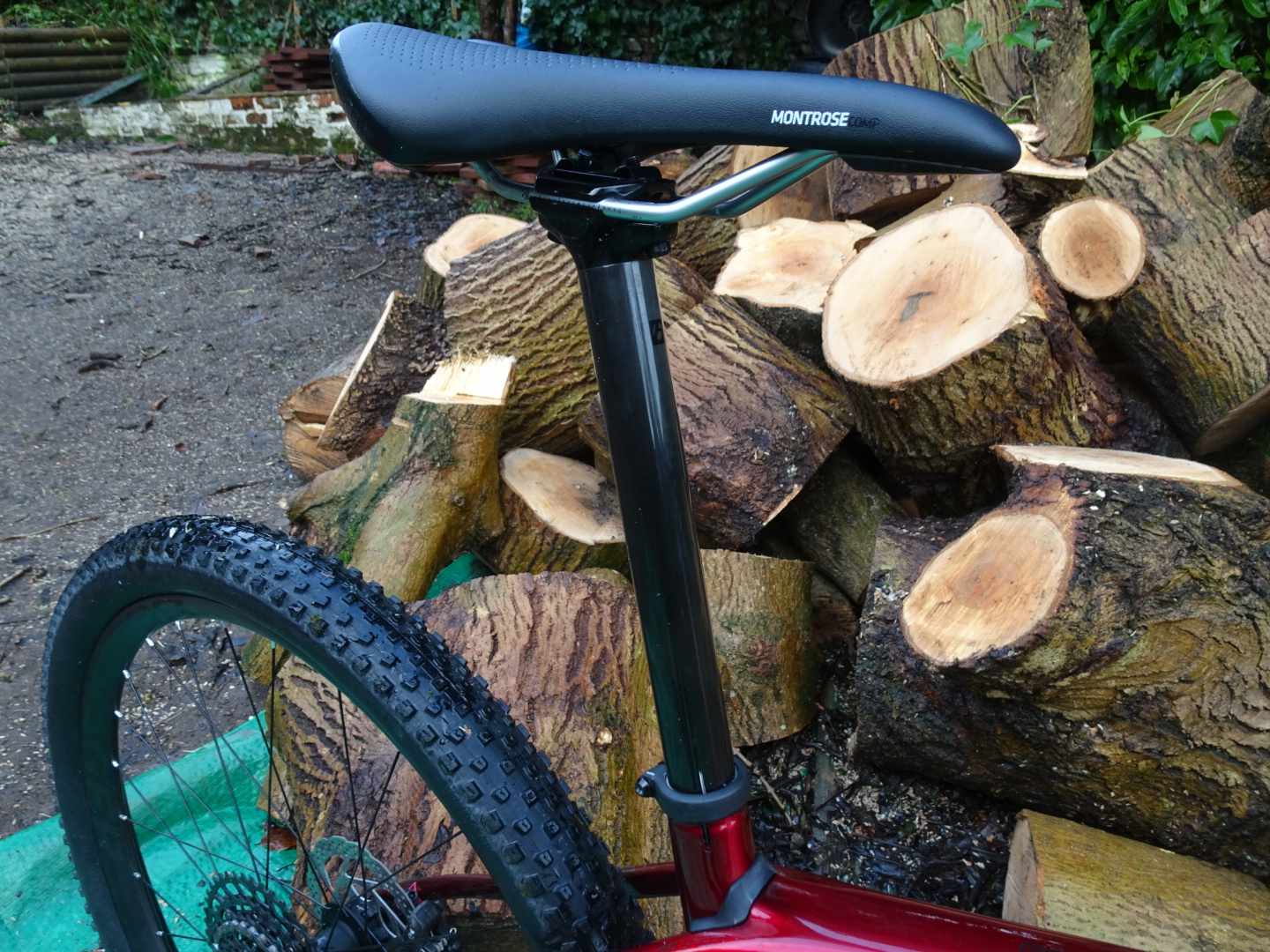 Those of you not distracted by Jason’s wood will have observed there is a bike in front of it. It’s in for our ‘Race Whips’ bike test later in the year, look out for Jason out and about on it on early morning test rides. It’s a carbon frame in what Jason describes as ‘matt “Ghost of Christmas Yet to Come” black’. You get SRAM SX Eagle, you get Boost (because, standards), you get SRAM NX gears, Shimano brakes, and Rock Shox Judy Gold 29 forks with lock-out lever. The tyres are fast-to-optimistic Fast Traks, and Jason has already declared the saddle ‘super-comfy’.