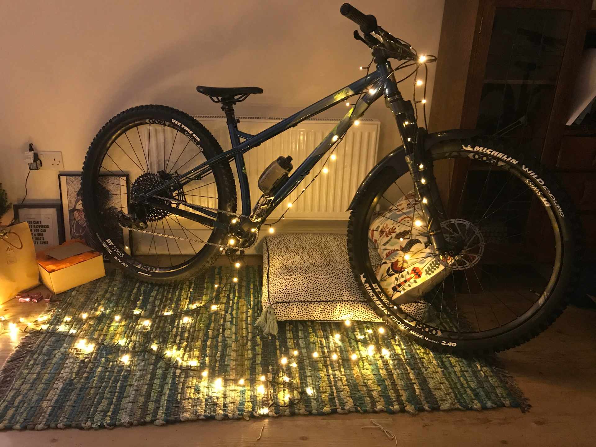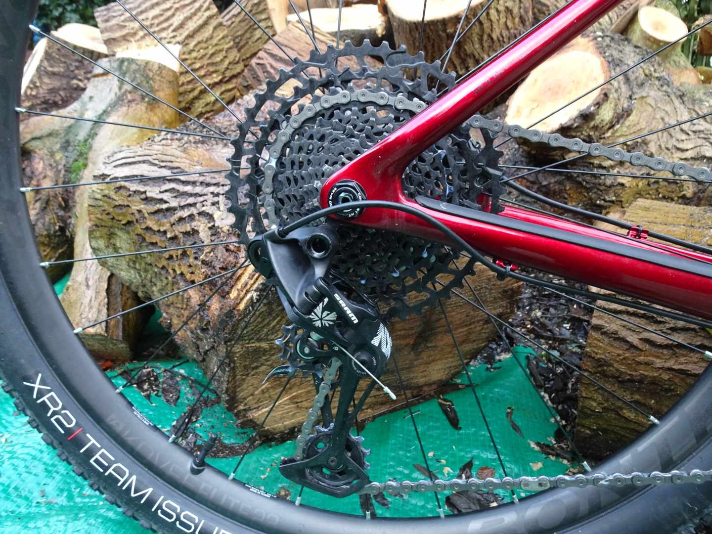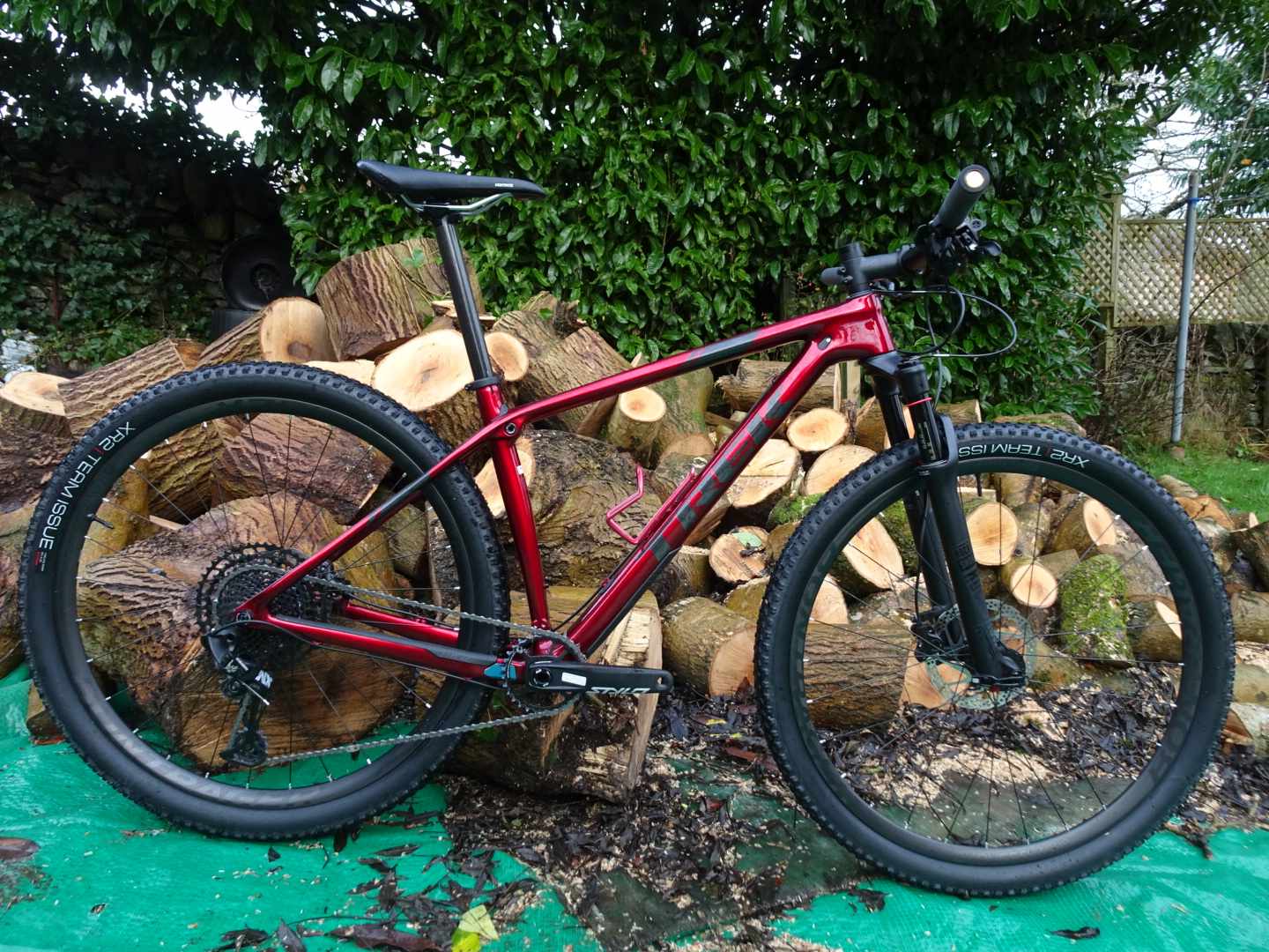 Those of you not distracted by Jason’s wood will have observed there is a bike in front of it. It’s in for our ‘Race Whips’ bike test later in the year, look out for Jason out and about on it on early morning test rides. It’s a carbon frame in what Jason describes as ‘matt “Ghost of Christmas Yet to Come” black’. You get SRAM SX Eagle, you get Boost (because, standards), you get SRAM NX gears, Shimano brakes, and Rock Shox Judy Gold 29 forks with lock-out lever. The tyres are fast-to-optimistic Fast Traks, and Jason has already declared the saddle ‘super-comfy’.