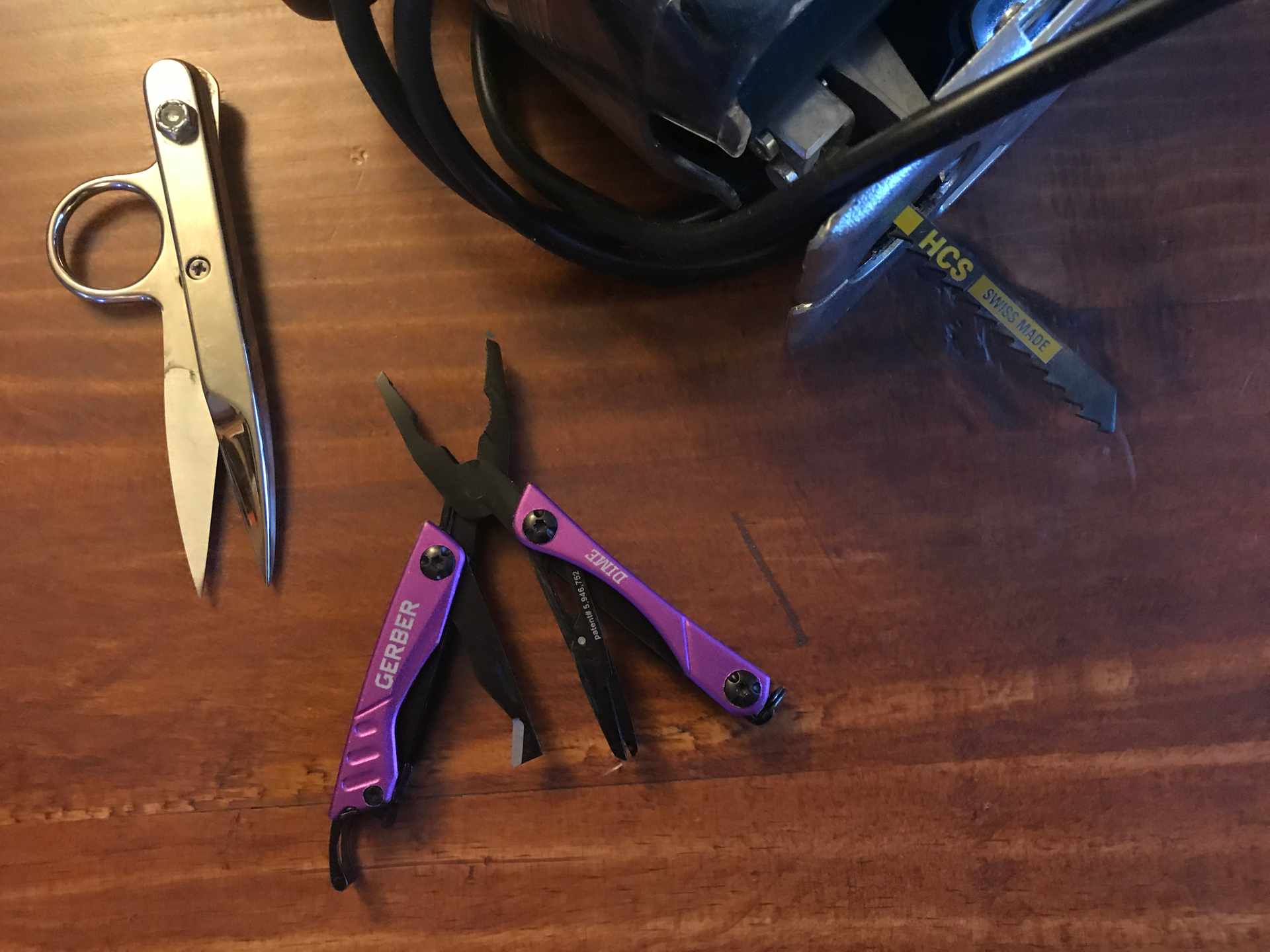 Hannah’s Christmas swag is of the practical variety. Her mum has given her a jig-saw, which Hannah is very happy about. She is going to do lots of chopping and making, hopefully starting with sorting out lots of shelving for her garage. Hannah’s beloved lives far away. He has given her a small purple tool that she can carry around with her always to remember him by. He has also given her pair of thread nippers. Hannah is very happy with her tool haul.