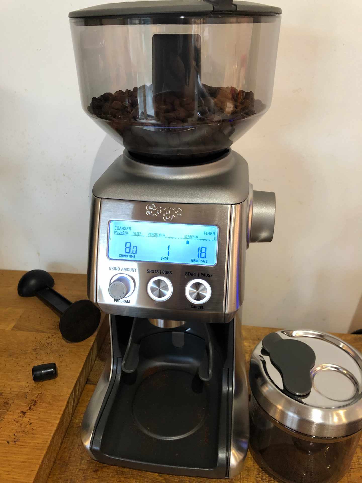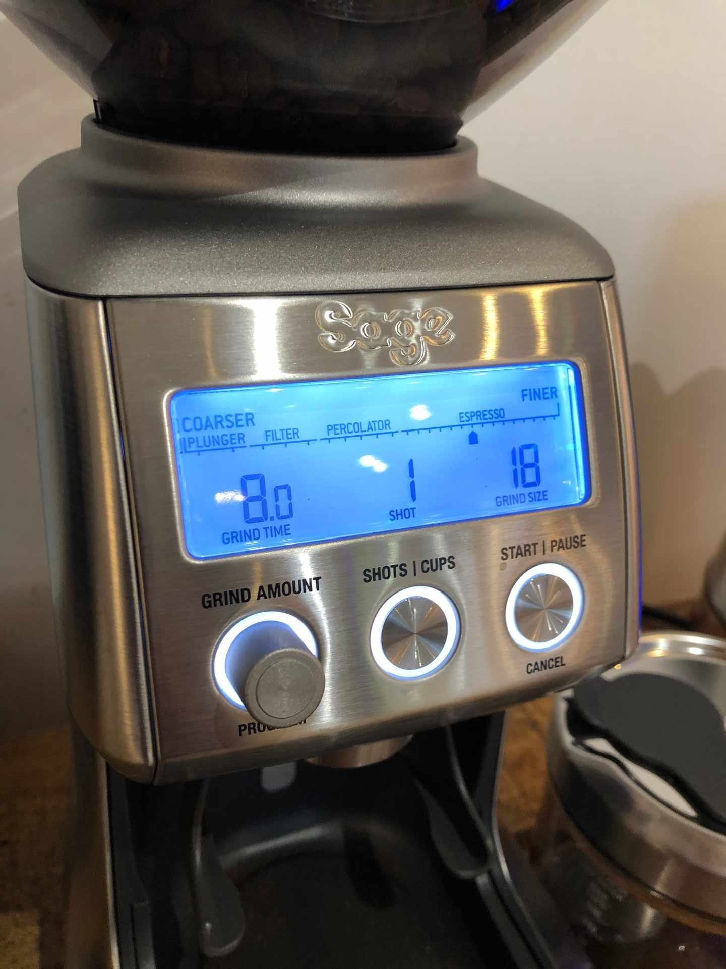 Mark has this Sage coffee grinder with a kabillion settings. It features automatic dosing direct into the hopper and grind settings from talc to lumpy. It can’t be long before he’s having smashed avocado on toast for breakfast, surely.