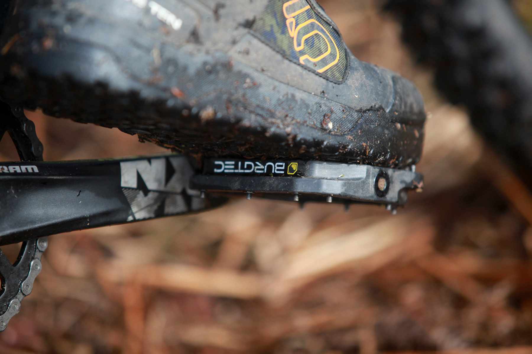 Who would have thought that a pair of composite pedals would bring someone so much joy?! I’ve ridden on Burgtec Penthouse Mk4 alloy pedals in the past and really rate them, but after riding the new composite versions it’s hard to think of a good reason why you would look at buying the more expensive metal pair over these. The composite Burgtec pedals cost half as much as the alloy models, they come in a ton of great colours, and because the body is a little thicker, they are also much easier to service than the metal Mk4s (you can use a regular socket to undo the axle). The design of these composite pedals apes that of the alloy version pretty well, but there are a few differences. As already mentioned, they are slightly thicker than the alloy pair, and they also have slightly less dish too, not that either of these differences actually makes a difference to performance and with 16 pins to grab your shoe you won’t be struggling for traction. If you’re worried about weight then that’s another reason why you might opt for these composite pedals. At 380g a pair they only weigh 10g more than the flagship Penthouse alloy pedal complete with Ti axle. The final cherry on top is that Burgtec says the composite body of the Penthouse is recyclable.