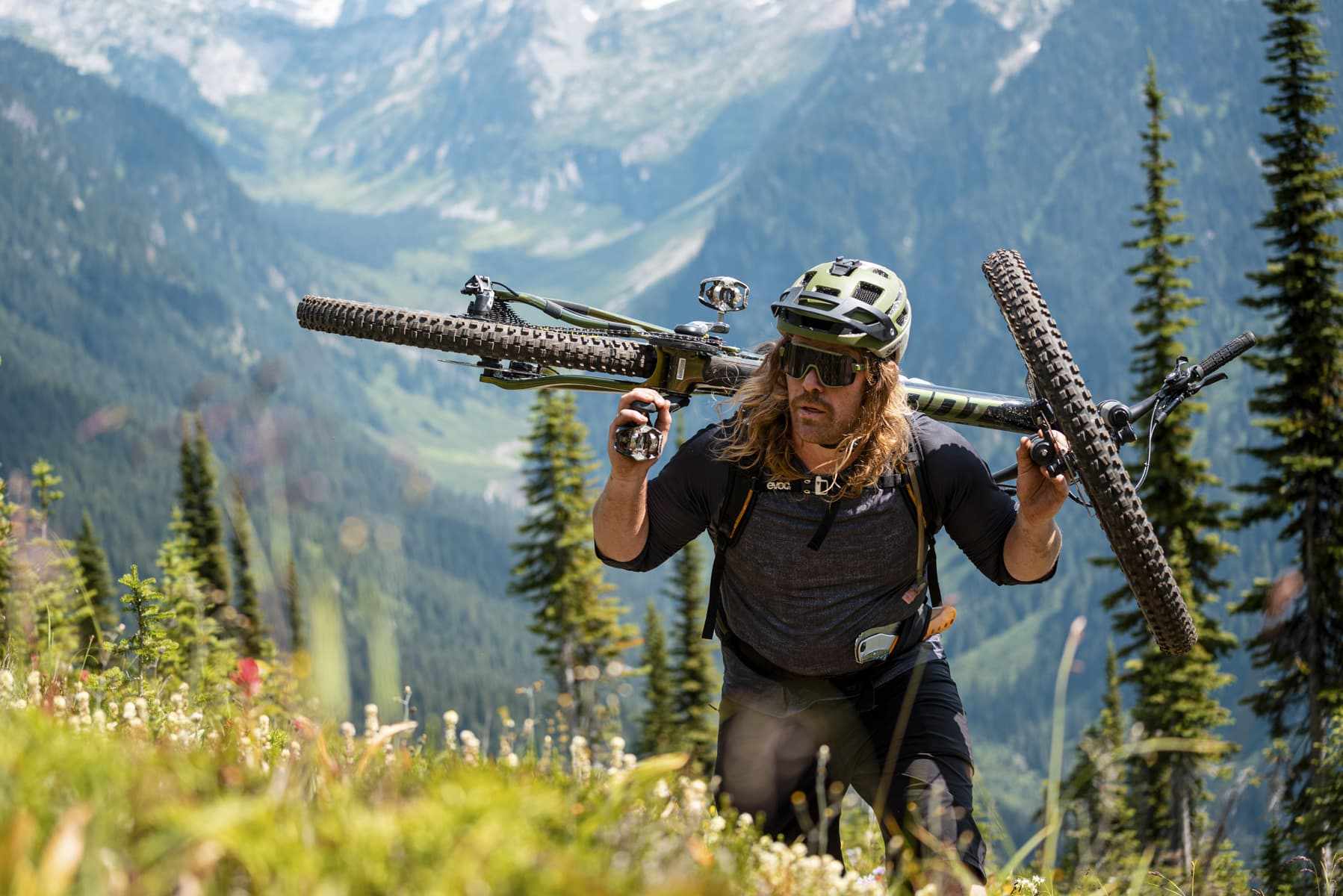 However, we did the heli-biking thing last week, so today is all about having an adventure under our own steam. It’s well known among my regular riding buddies that I have a certain twisted penchant for hikeabike. That age-old tradition of seeking out those hard to reach trails, where either the gradient is too steep, the path too narrow, or the terrain simply too loose to pedal up. The ones that demand you shoulder your bike and walk, often for hours at a time. And so it is that our target for the day was the towering 2,380m peak of Joss Mountain, set on the northern fringes of the Sawtooth Range in the heart of the Monashee Mountains, British Columbia.