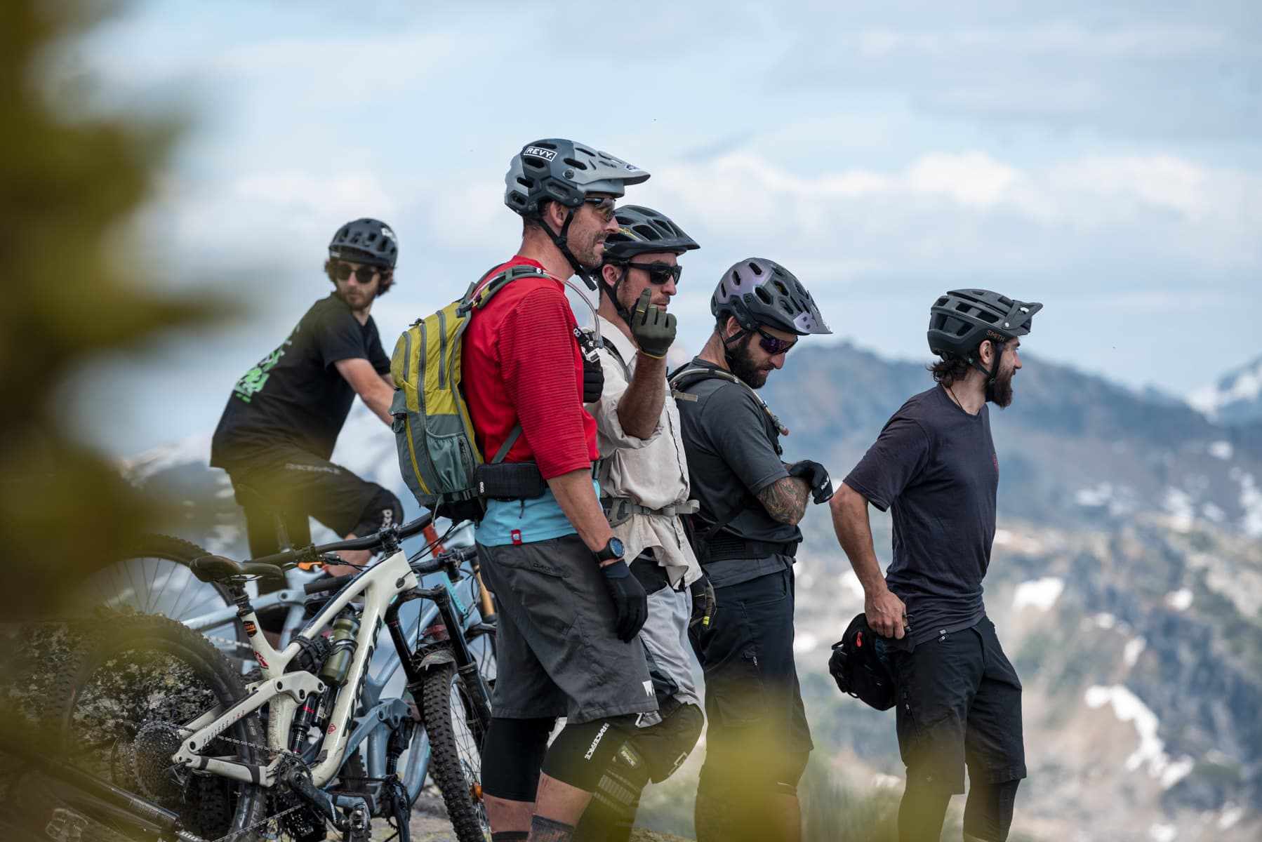 There’s a bit of a split at the start of the descent, with some of the group opting for a distant ridge, while the rest of us fly down a blown-out rocky chute. I’m instantly at home, delighted to be heading downhill, my borrowed Rocky Mountain (how apt) handling the chunder with aplomb. We pause for breath and witness the rest of our party silhouetted against the afternoon sky having a blast cruising along their chosen ridge. There’s no rush while we wait – I take the opportunity to fire off a few photos, the sun is shining and the company is good. I’ve only been riding with these guys for a few hours and it feels like I’ve known them a lifetime.
