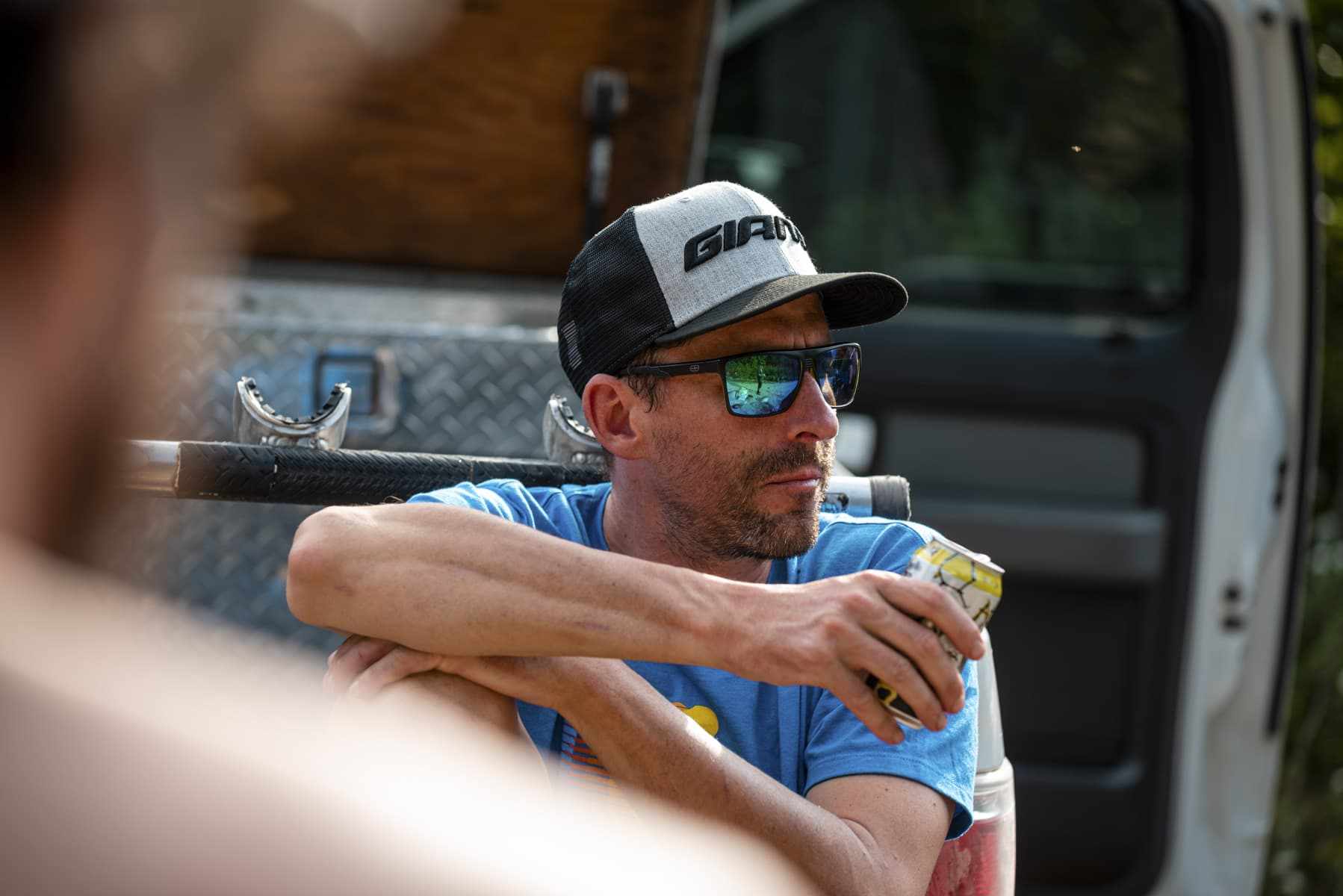 It’s a ramshackle and animated crew that gathers outside La Baguette in downtown Revelstoke, on the Monday morning of the August Long Weekend. What had started out as a low-key event with Matt and a couple of his riding friends, is no longer. Word has spread, and as seems to be the way in all good bike towns, once one person hears about a good thing going down, there’s no stopping the party. It doesn’t help that Matt’s on the board of the Revelstoke Cycling Association, and Revy has a very tight-knit community – wildfires have been known to spread slower than news of this ride. Add to the equation a bank holiday weekend and the lure of an epic ride on a barely ridden trail, and my attempts to keep this small, carefully organised ride-with-photos (it’s not really a photoshoot) under any semblance of control are gone in a puff of smoke – by the time we’re ready to depart, we’ve managed to fill two Canadian-sized pickup trucks for the short journey out of town to the trailhead.