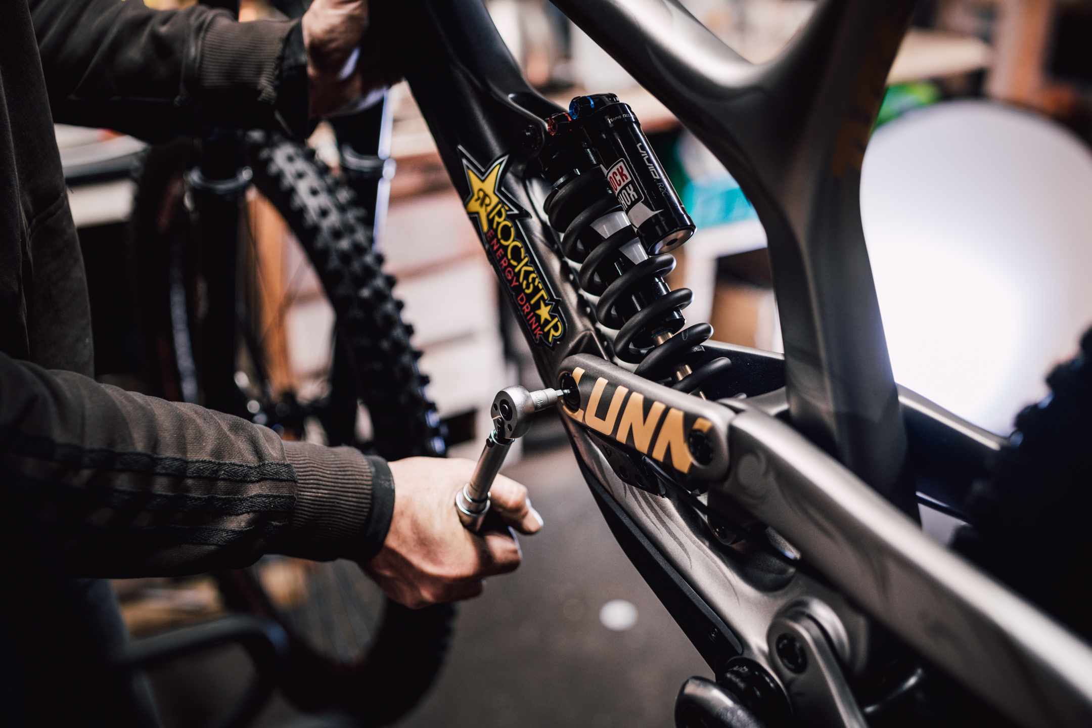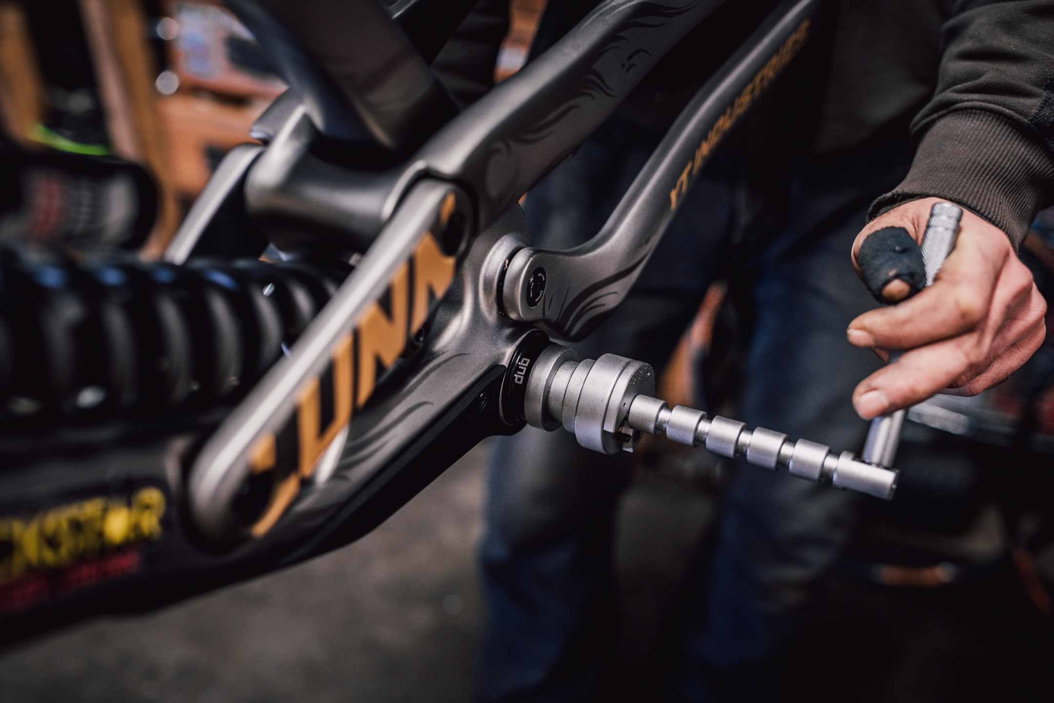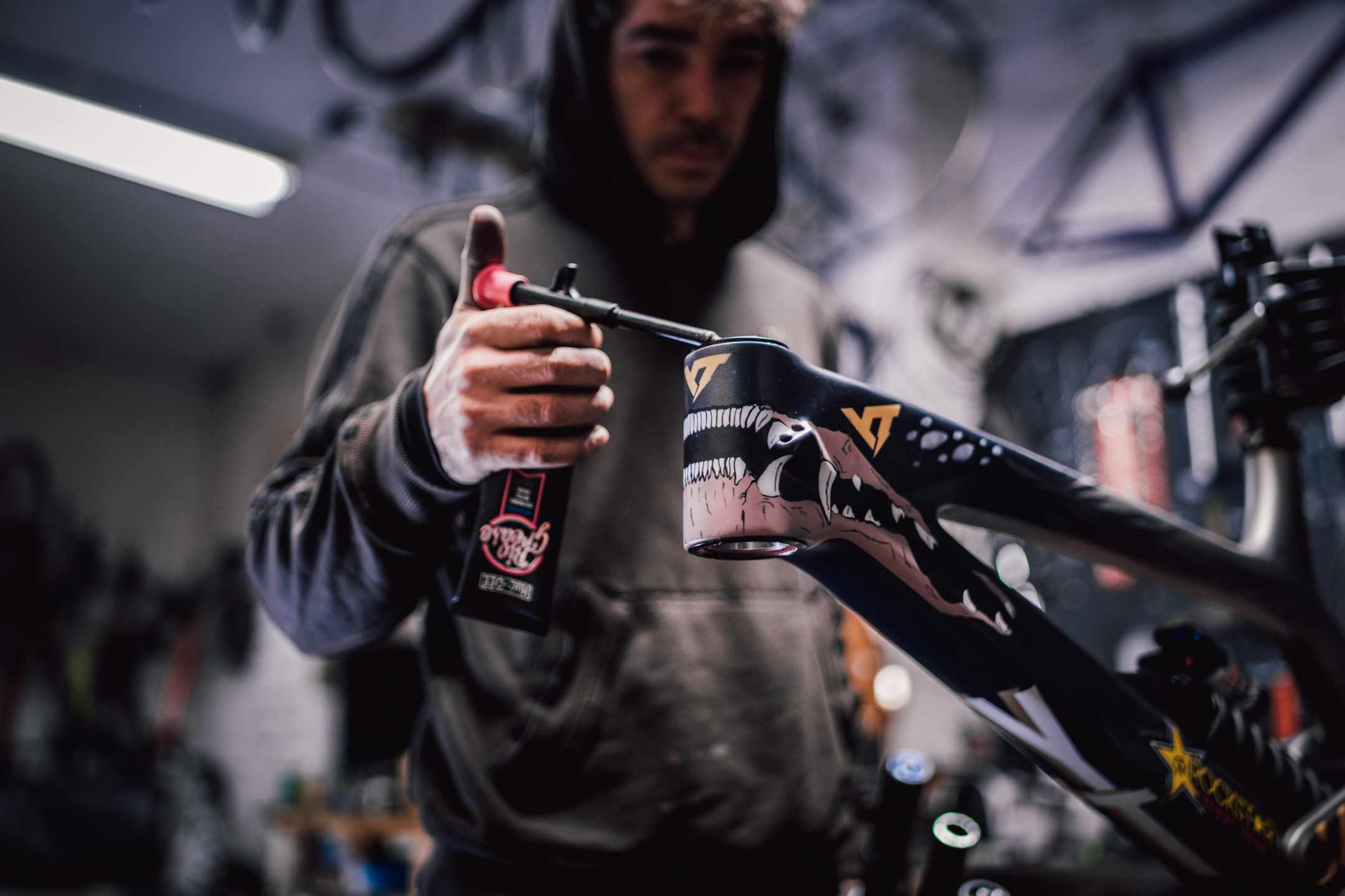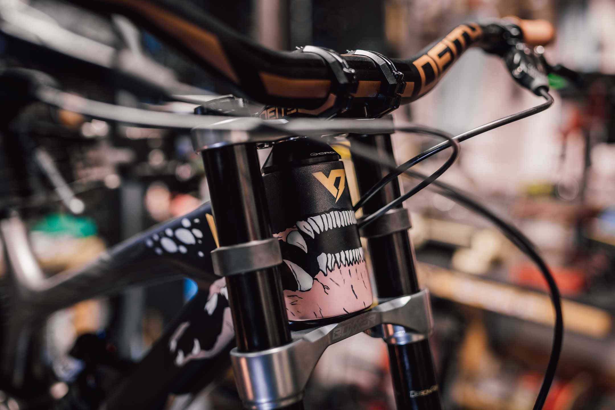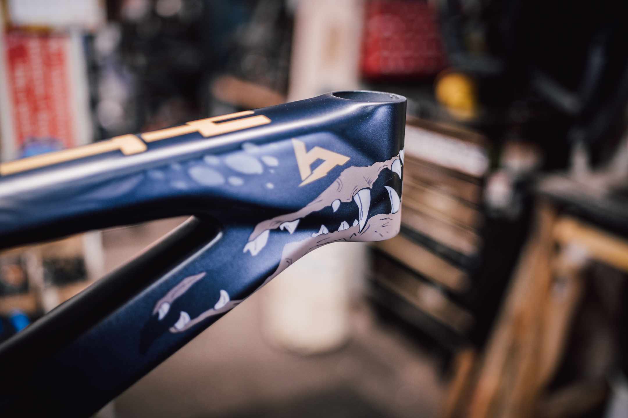 Check out the gallery of the bike build, provided by builder Gee Milner – it’s pretty lush. We’re guessing the paint job is the work of Lars Diedenhofen, YT mechanic and painter of all YT’s Rampage Bikes – with those teeth, we can’t help but wonder what Rough AF4 would have looked like.