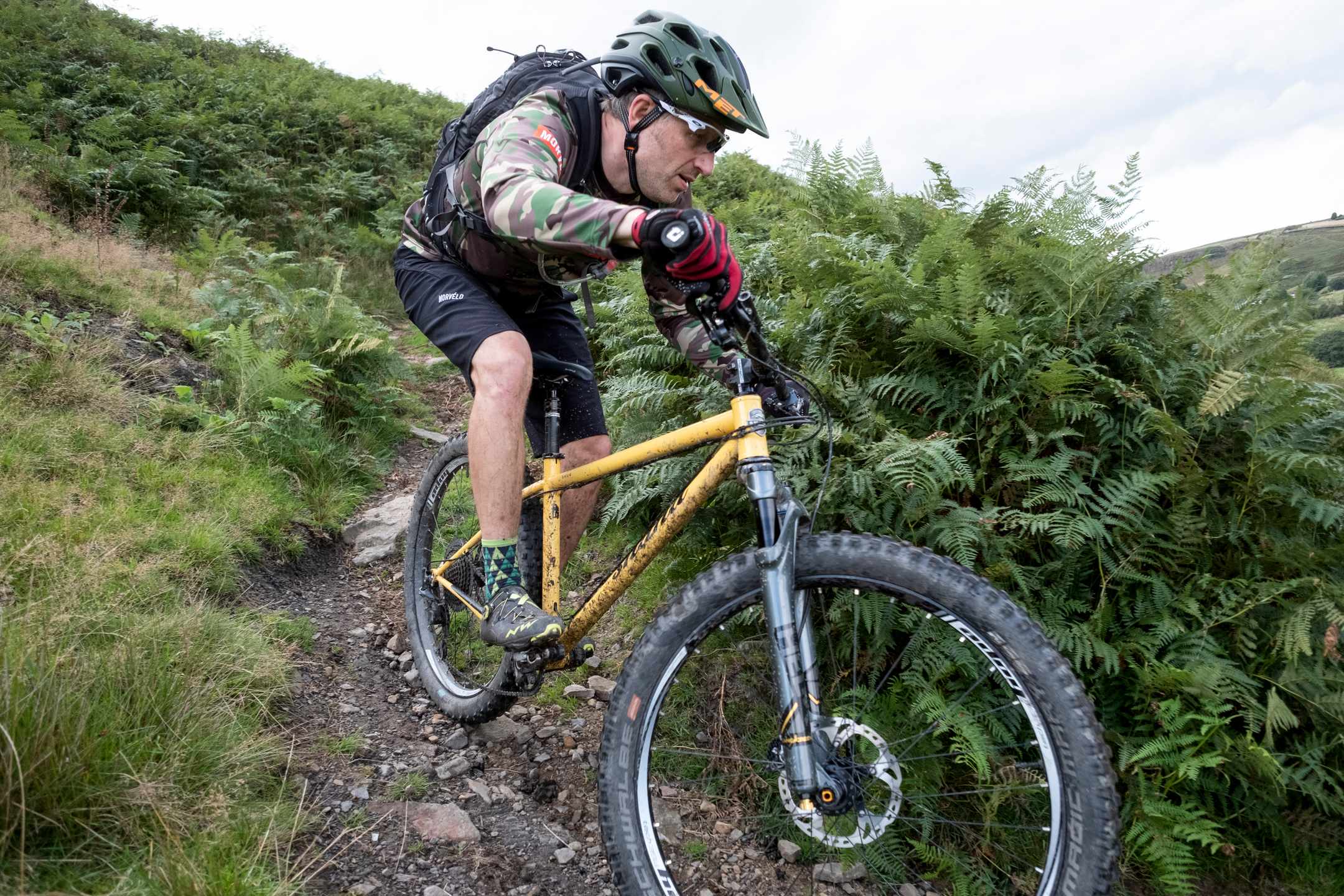 While it’s possible to run the Shug as a normal 29er, the bigger 27.5 x 2.8in tyres bestowed frankly silly amounts of grip, and thanks to the geometry, your body weight should be in the right place to make use of it. Schwalbe also seems to have nailed the balance between overall tyre weight and sidewall toughness, and there were none of the usual issues that I’ve experienced where Plus tyres meet rocky trails beneath a slightly clumsy rider.