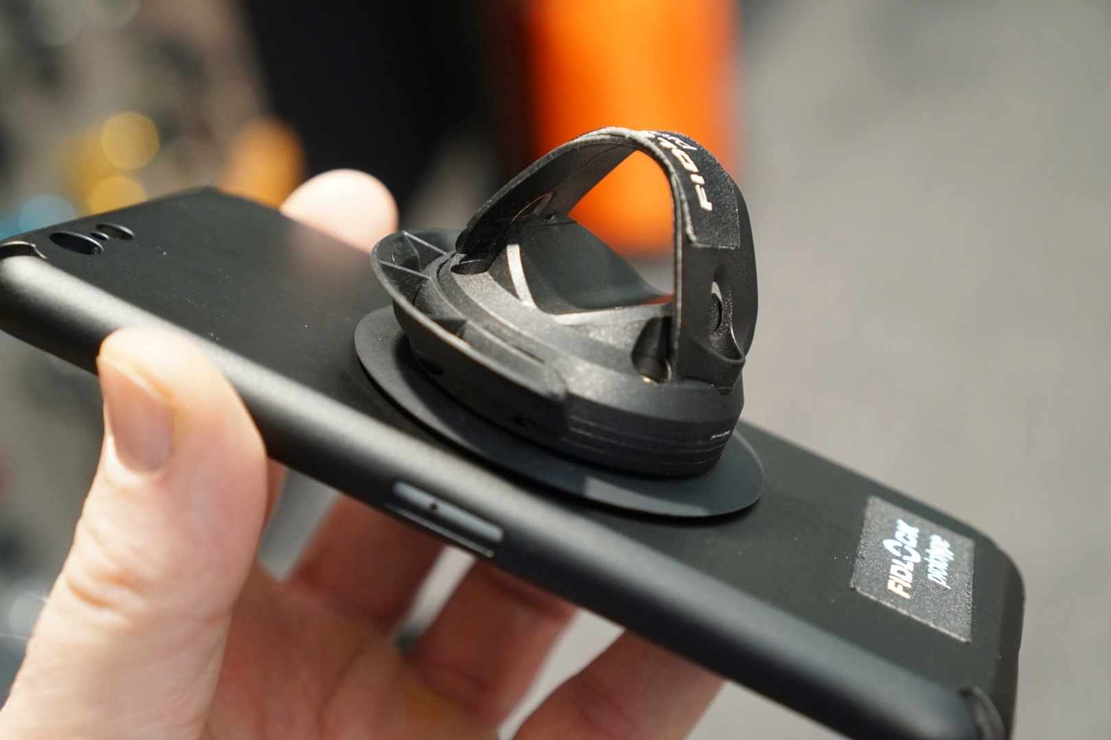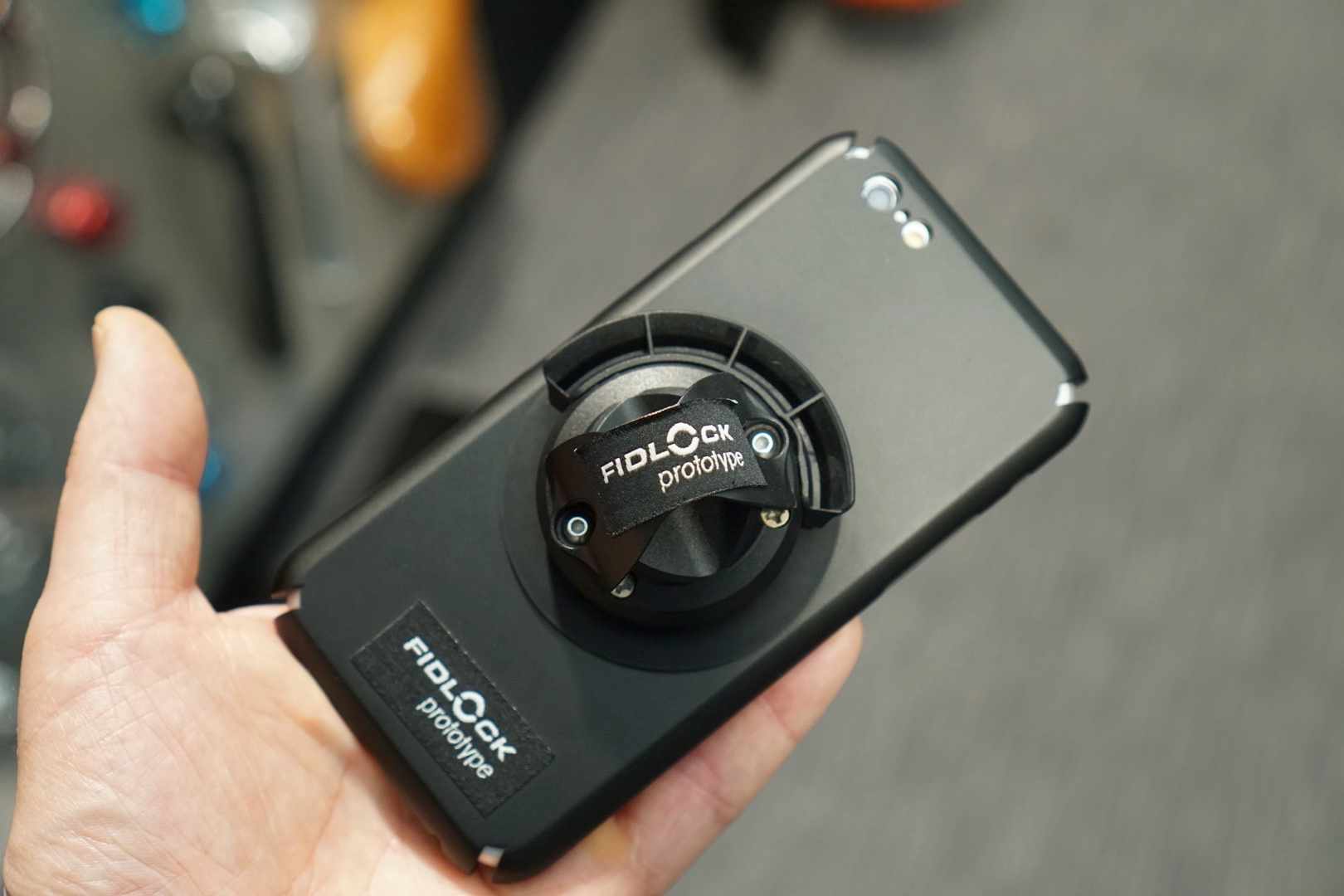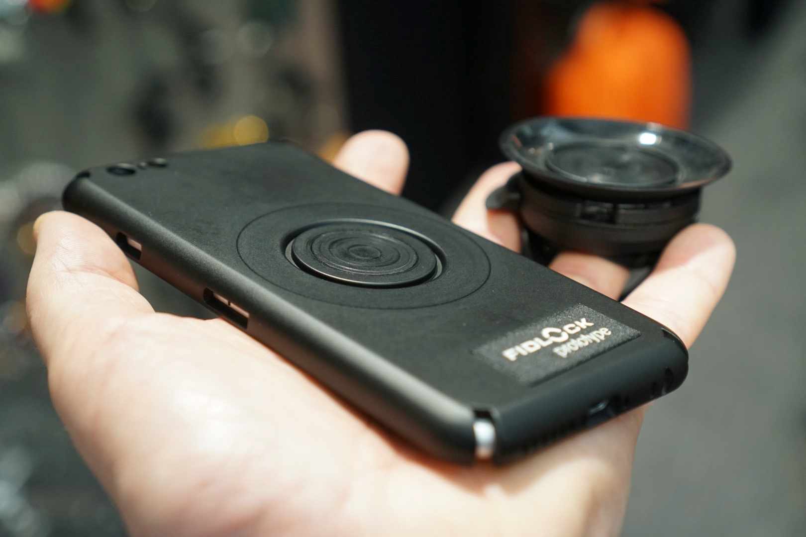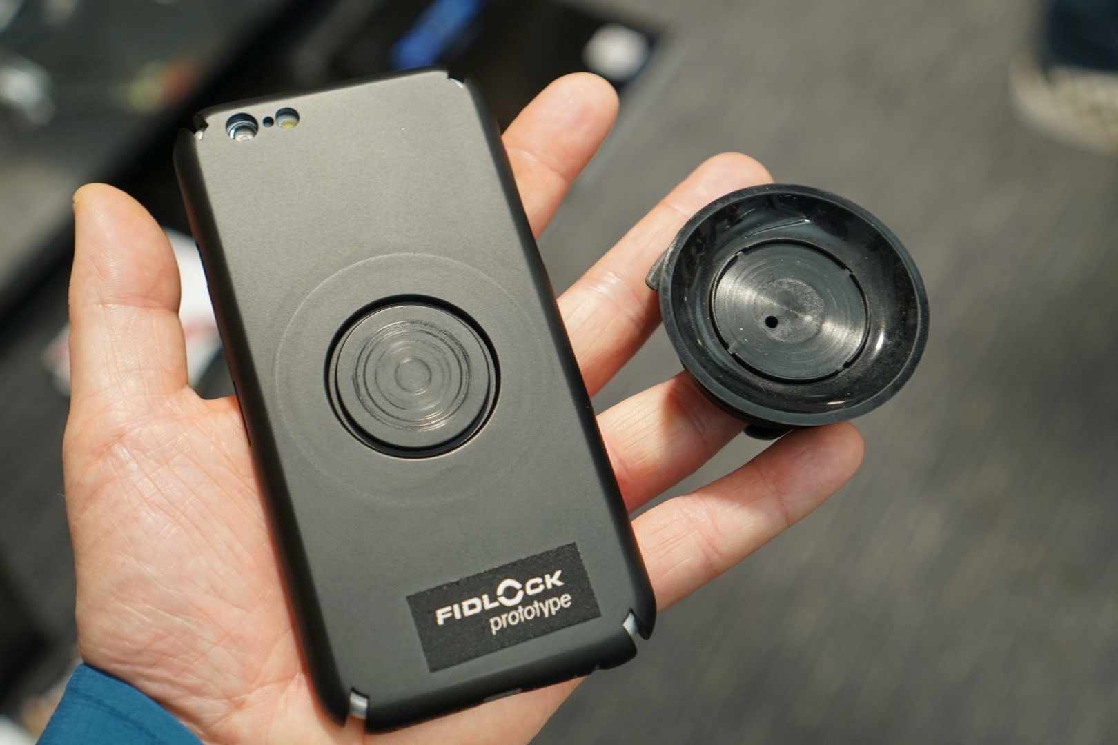 Fidlock had this prototype phone holder on display that uses a clever combination of magnets and suction cup to ensure your phone is not going to go anywhere even over rough terrain.
