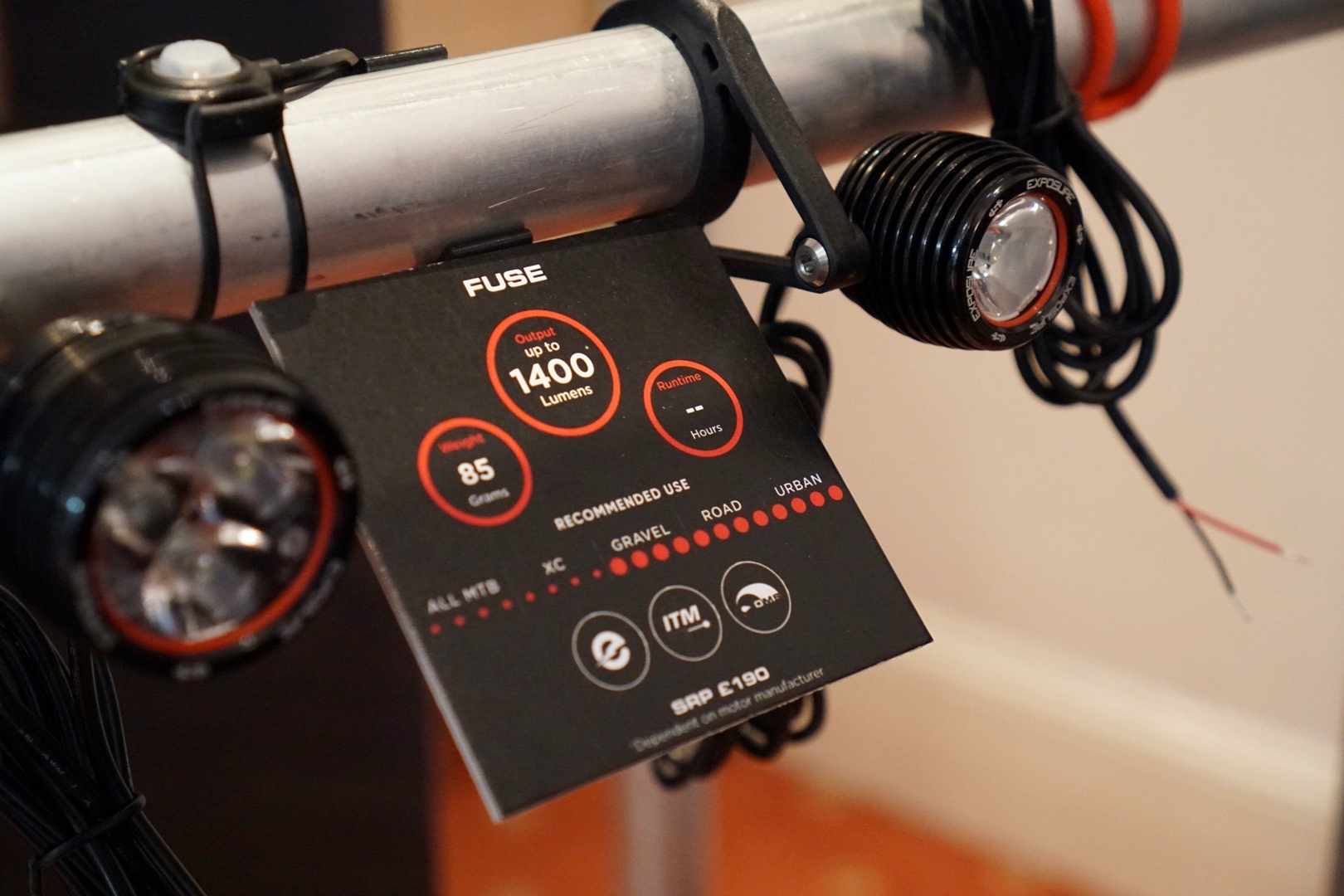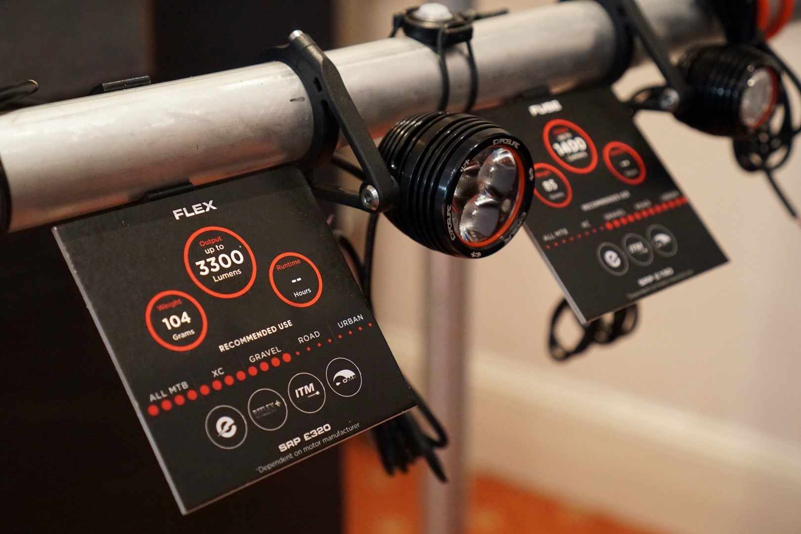 Exposure had their usually huge selection of bike lights on display, but the latest are these e-Bike specific lights that connect directly to your e-Bike motor and battery system.