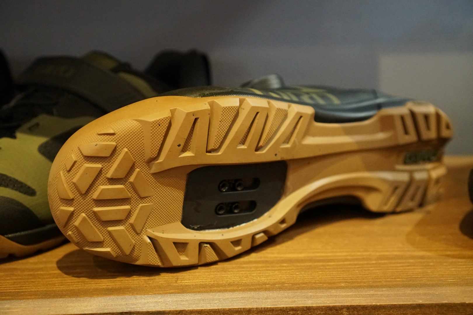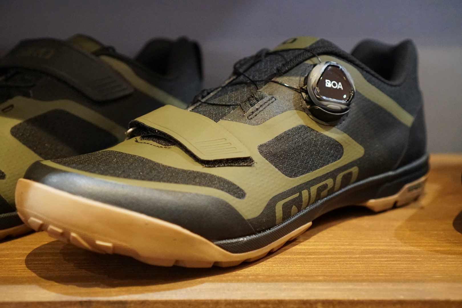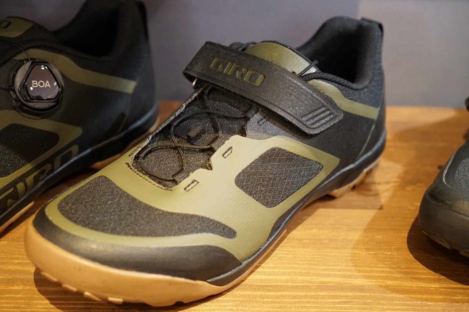 Giro had two new SPD shoes on display. The new Ventana and Ventana Fastlace shoe, both use the same low-profile tread design and offer cleat mounts for running with your clipless shoes, but each offers a different fastening method.