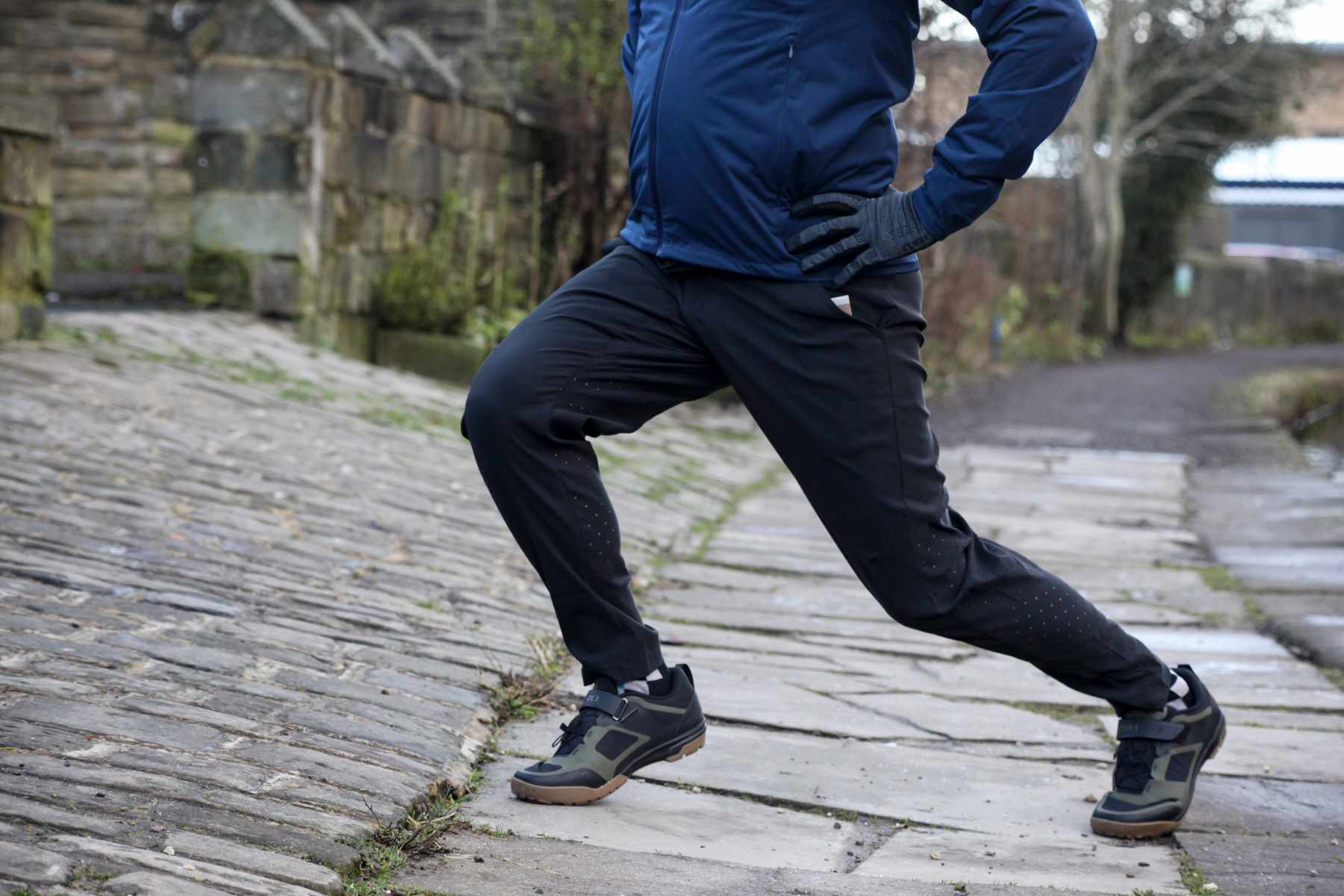 The Havoc Pants are DWR coated softshell material for riding in cooler temps. With a four way stretch, they’re comfy on and off the bike. Chipps here is wearing a size 32, which he reckons he’s not been since he was a bike messenger in the eighties, so size carefully. There’s plenty of Velcro adjustment, though, and belt loops for when the new, fit you appears.
