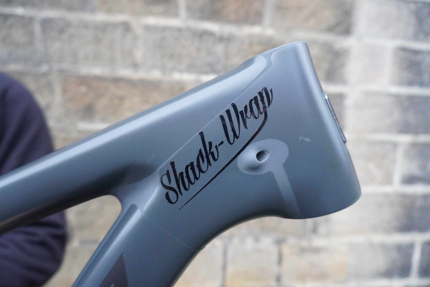 The finish around the Santa Cruz headtube badge looks amateur at best, the shack-wrap is similar, Invisifeame give a much more professional finish and look, the space around the cable inlets and headtube badge on the shack-wrap version could and should be closer.