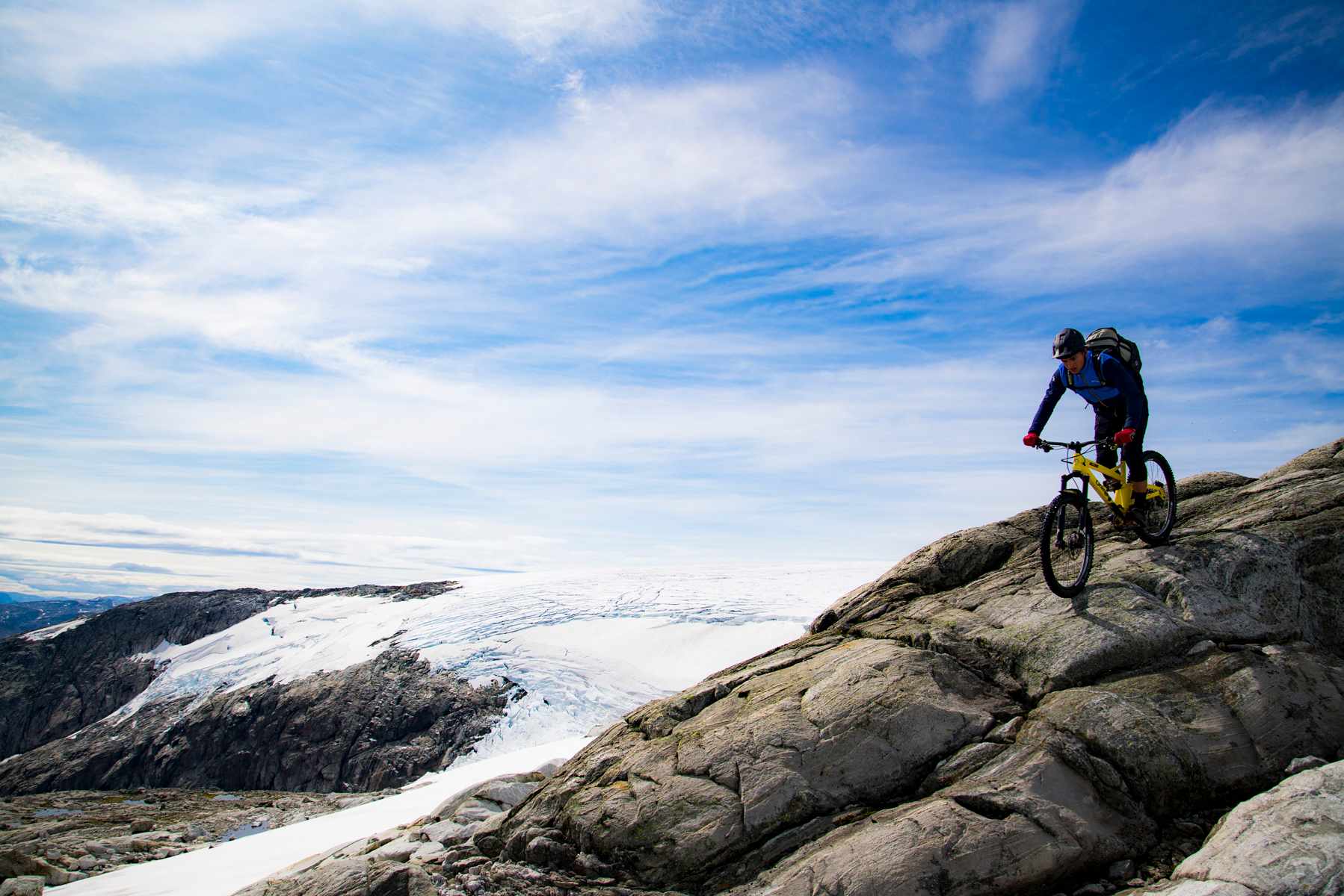 Pete Scullion hikes up an ice-filled mountain range in order to catch first light on one of Norway’s biggest glaciers and a seemingly endless ride back down to sea level.
