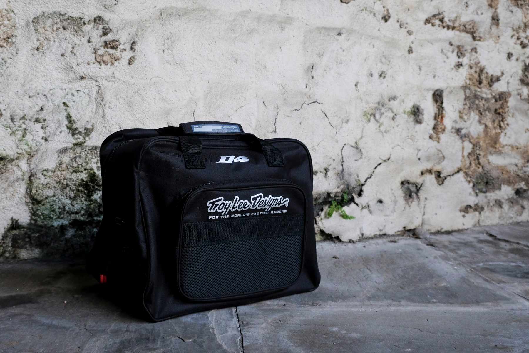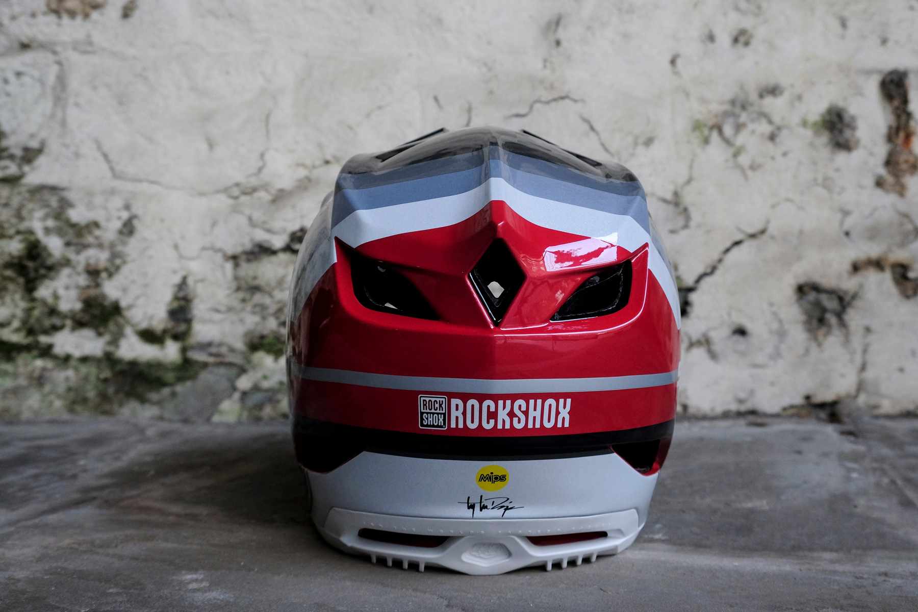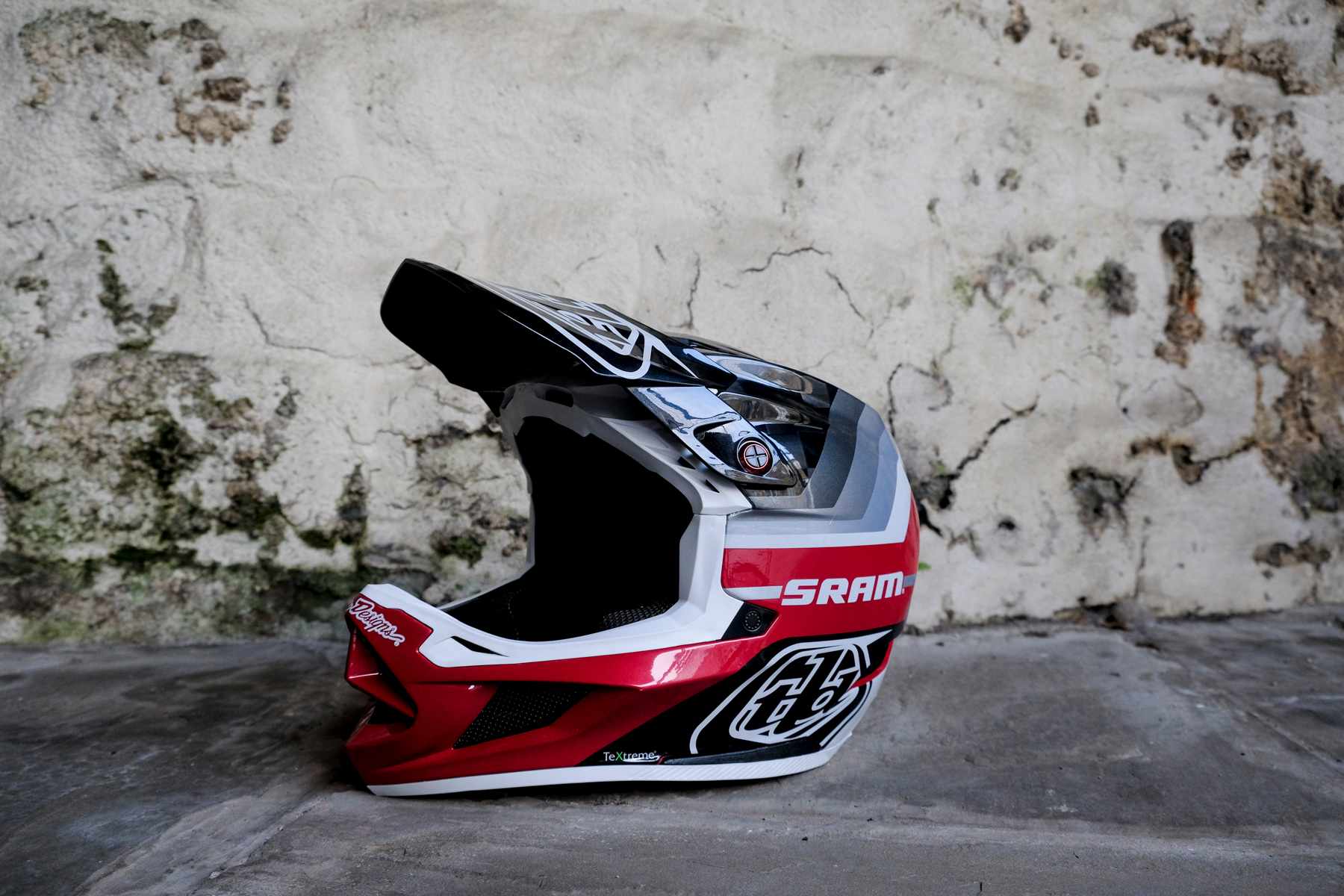 As we showed you on Wednesday, Troy Lee Designs has upgraded the venerable Troy Lee D3 helmet after 11 years to the new D4. It weighs in at a scant kilo, give or take a Cadbury’s Flake and offers full downhill and BMX-worthy world cup performance protection while still venting well. There are several colour options – and this is probably the most divisive one, depending on whether you’ve got Rockshox and SRAM on your bike. It’s also the full-on Textreme carbon version with the ‘How much?’ price tag…