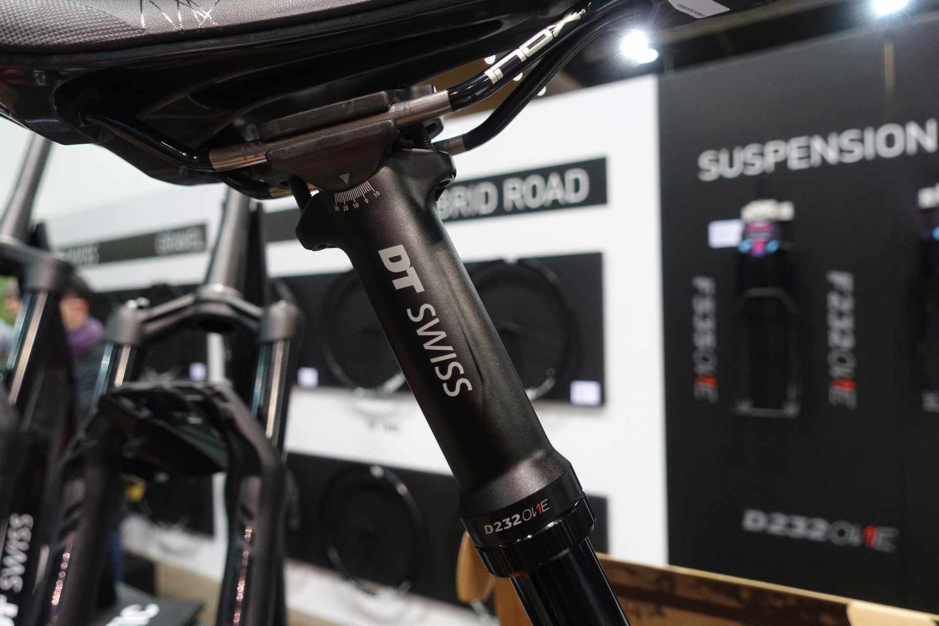 This was our first chance to see the new DT Swiss XC race components, launched last month – which includes a minimal, super light short-drop dropper and lightweight suspension fork that you’re bound to see in an upcoming Olympic event this summer…