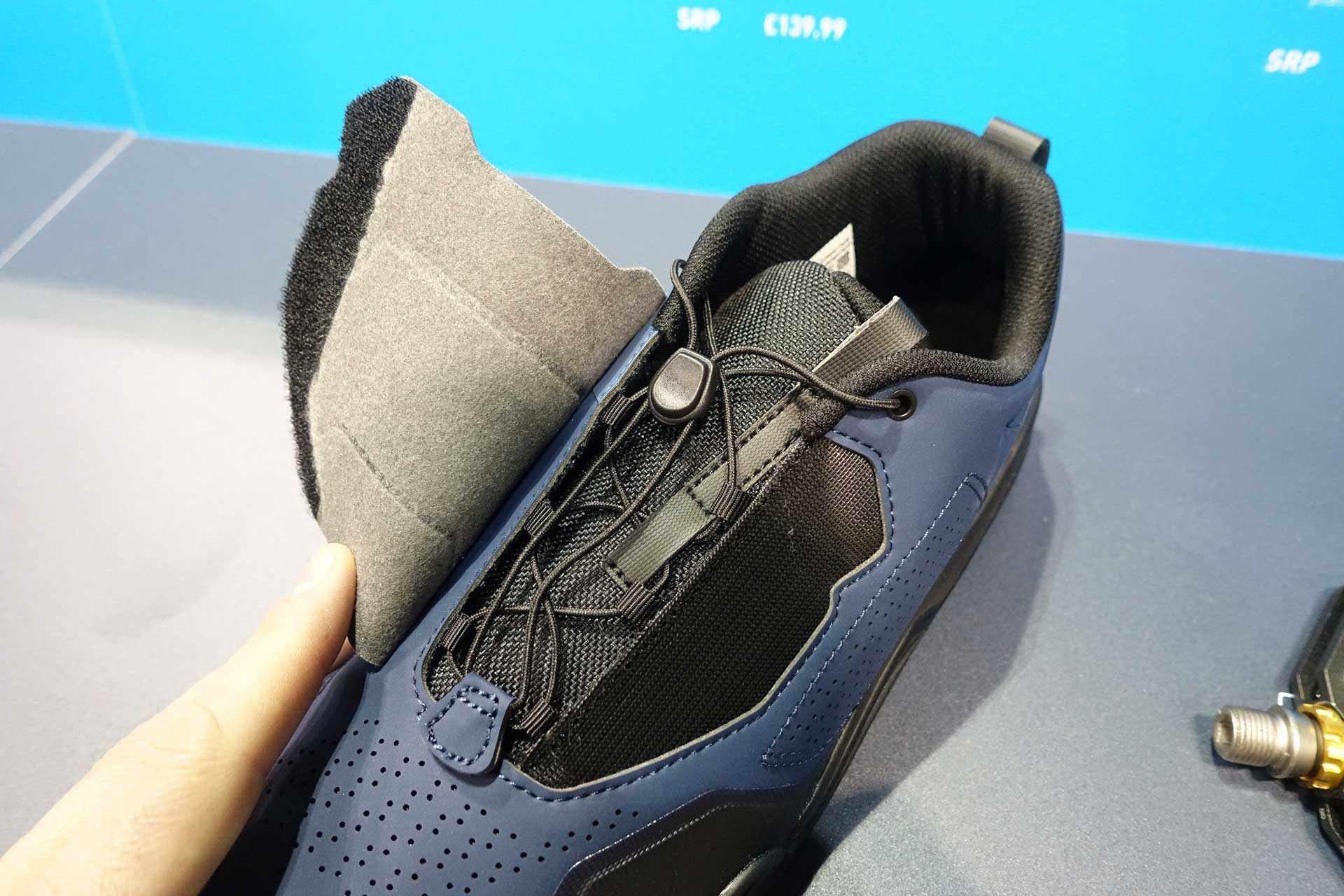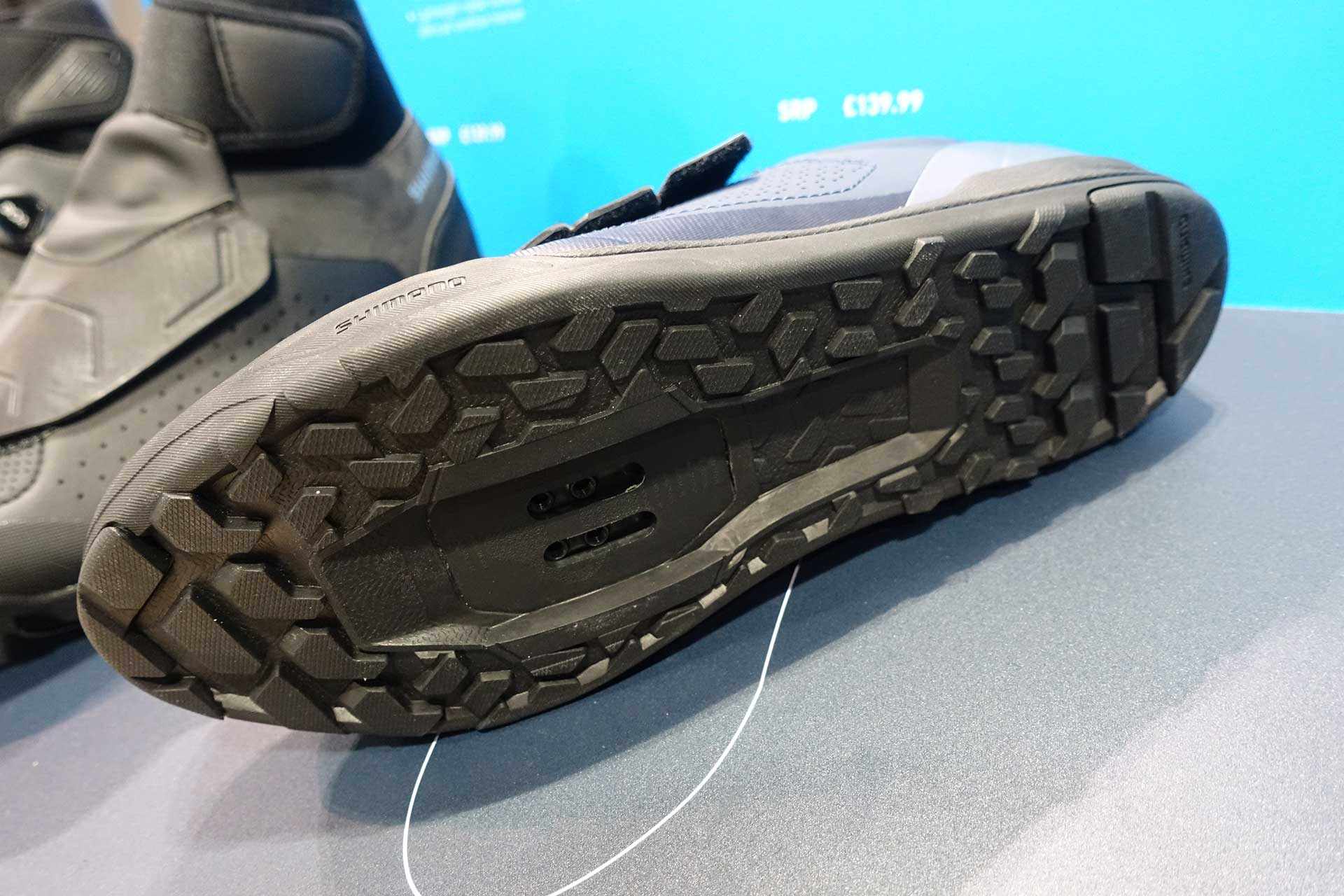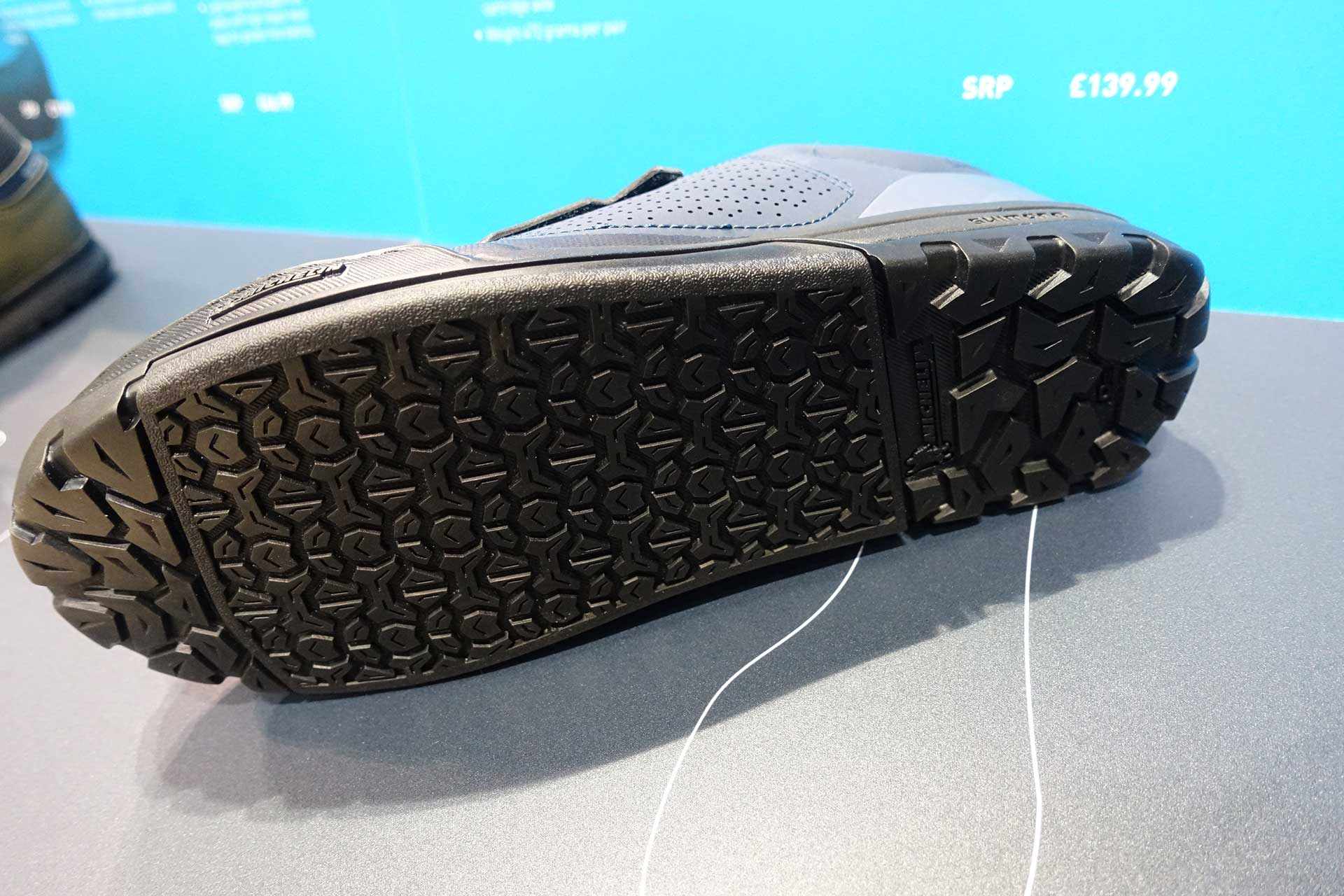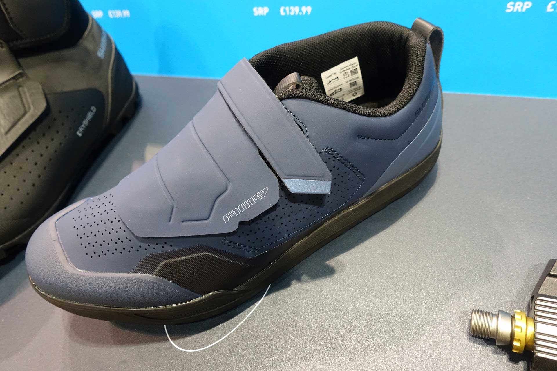 This was the first time we’d seen the new Shimano top-end enduro/trail shoes – the AM9 and GR9. The AM9 shoes are the clip-in shoes and the GR9 ones are the gravity/flat pedal version. They look super smart in this matt blue finish (blue is very in right now apparently…) whether you’re clipping in or not.