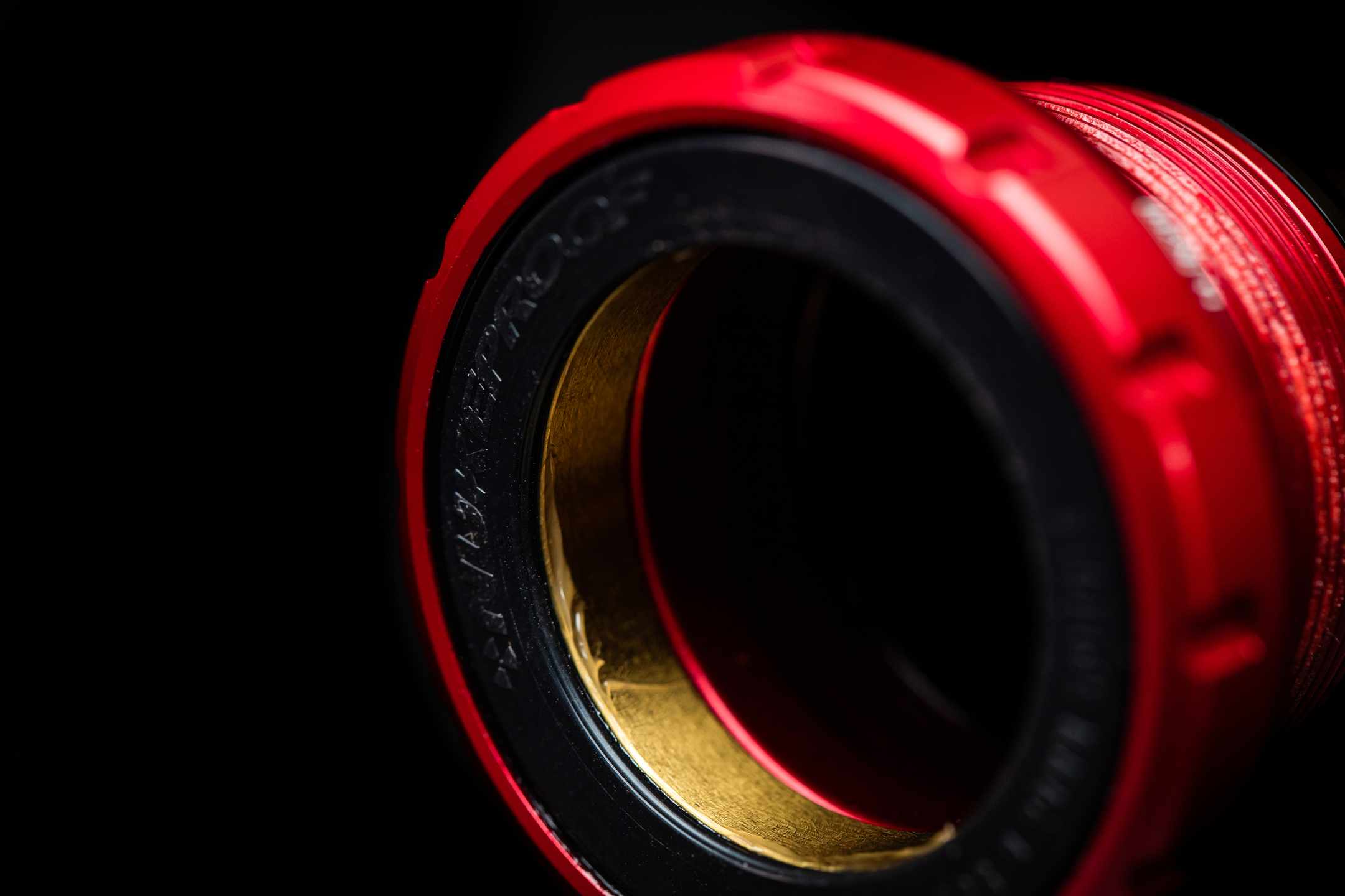 The titanium coating is applied using “Physical Vapour Deposition” which means that the material is vaporised in a vacuum environment and then deposited on the bearing races as a composition coating. This process allows the structure, density and stoichiometry of the coating to be controlled allowing the exact attributes in our design brief to be achieved. The coating is 0.000118” thick and has a molecular bond to the bearing races so it won’t wear off or corrode. The bearing is ABEC 5 certified which means that it has passed tests which include ID and OD tolerance’s, roundness of ball, trueness of faces & surfaces as well as noise testing at high RPM making it the perfect bearing for use in a headset.