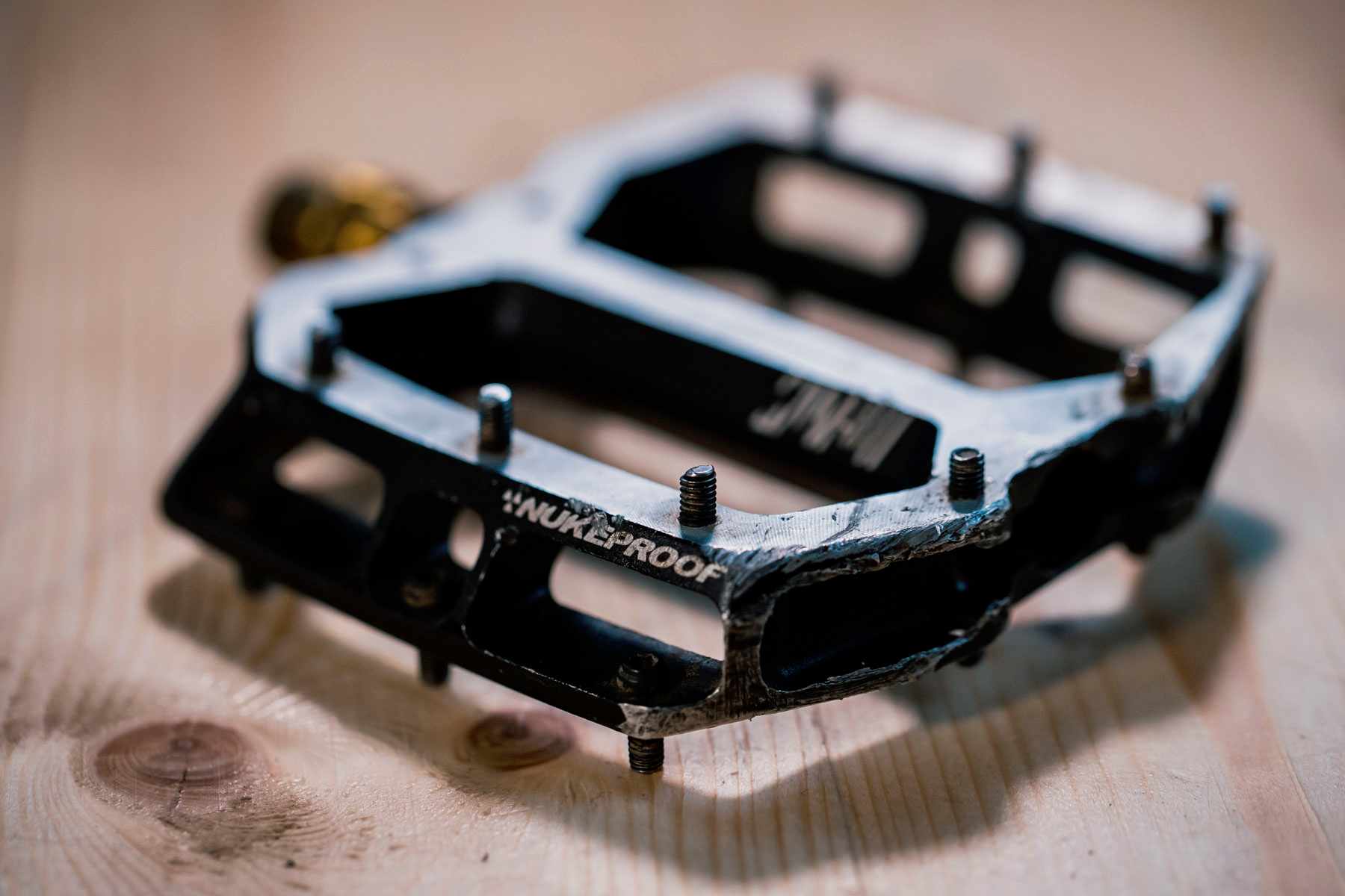 The engineers found that they couldn’t just cut the edges away because it took too much strength out of the pedal, so Nukeproof re-engineered the whole pedal to reduce the edges whilst keeping the pins in the same place, because Sam liked the feel of the pedal, just wanted more clearance.