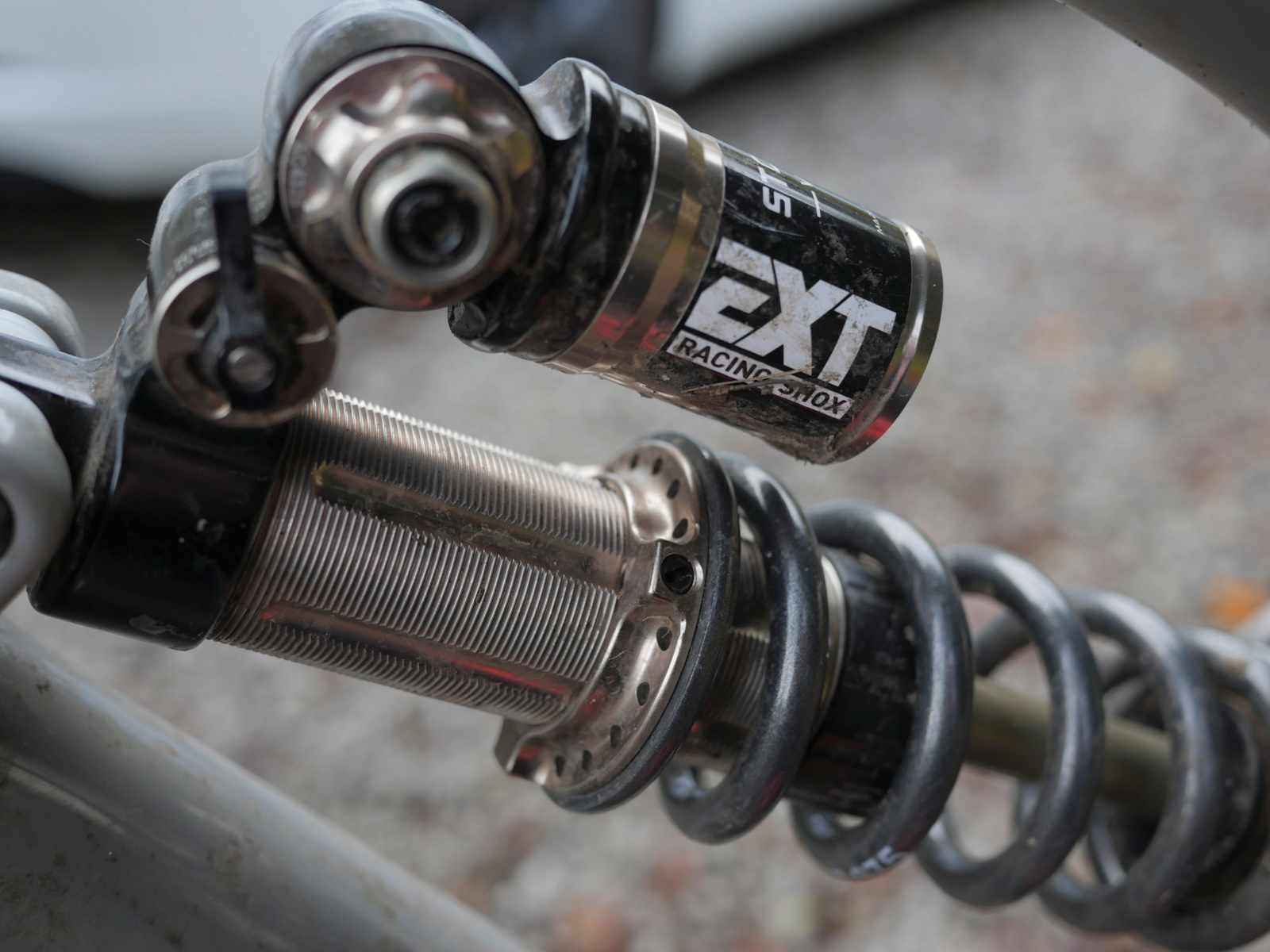 I should tell you a bit more about the shock. Back in the 90’s EXT were making shocks for rally cars, and still do, where many of their technologies were developed before being adapted for mountain bikes. Their Arma shock is designed for downhill, but the Storia you see here is more for enduro bikes.