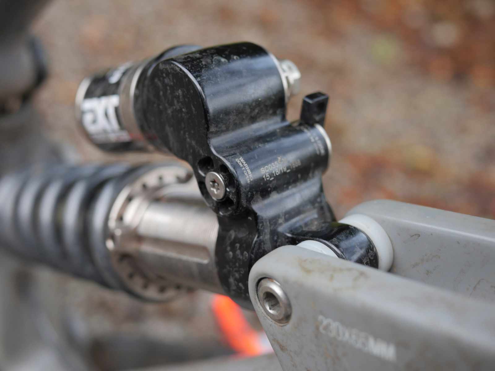 As well as preload and spring weight, the other adjustments on this are a rebound damping dial near the base, high and low speed compression near the piggyback cylinder, plus a lockout switch.