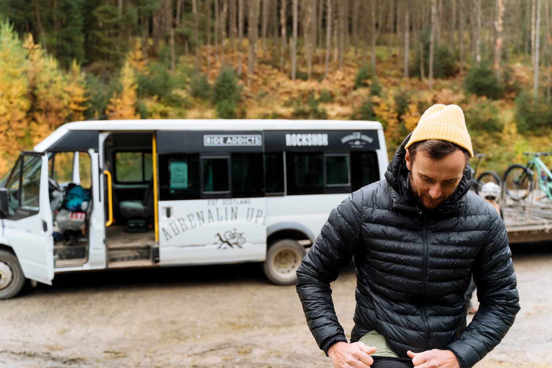 It was with a whisky-induced fuzzy head that we climbed into the Adrenalin Uplift van the following day. Based at the bottom of Innerleithen trail centre – part of the original 7stanes network and long home to downhill trails before enduro existed – there are now dozens of unofficial tracks cutting through the woods. You can climb via the trail centre route, or on the fire road, but an uplift maximises the fun/time quotient and gives you longer to shake off the hangover.