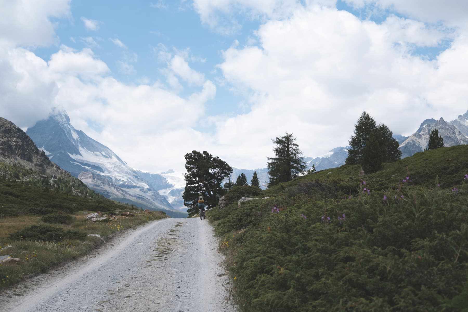 This thing was just utter horse poop. It was at this point that I realised the extent to which Emma took advantage of my aversion to properly reading the trail map. This thing was a slow burner. Despite being clicked into my lowest gear and my feet spinning to the beat of a dreary funeral march, I was dying over and over and aiming silent death threats in Emma’s direction. In an attempt to have a rest without letting Emma know that my left lung had fallen out 20m into the climb, I proposed a pee/resuscitation break. Over the past 26 years, I’ve developed a bit a reputation for peeing in somewhat ‘interesting/inappropriate’ spots. I can safely say that this pee was solidly within the Top Three. I selected myself some convenient boulders and wedged my butt into place with the Matterhorn staring fondly down at me.