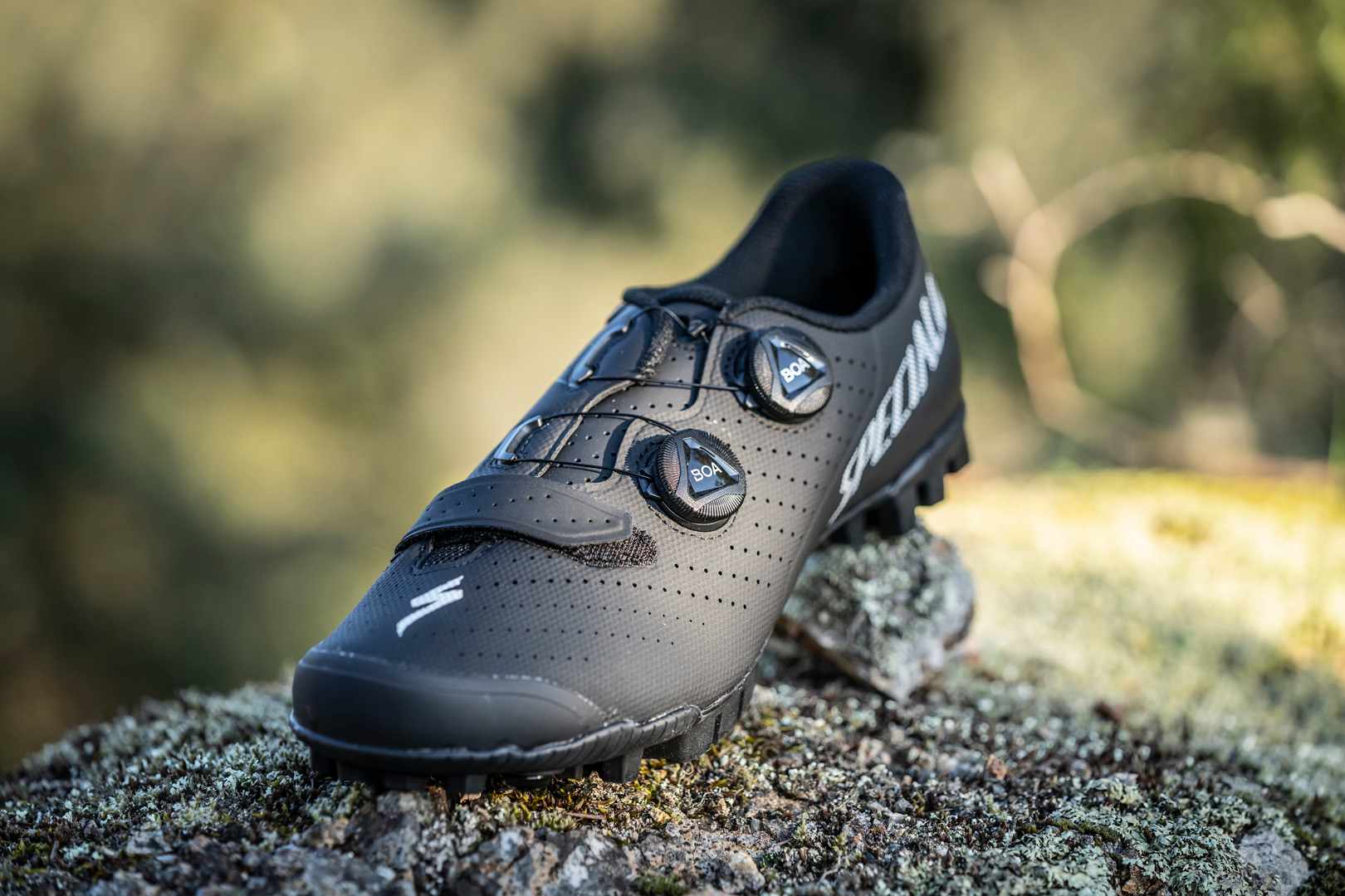 The new Recon shoes can trace their ancestry back to the S-Works Recon SPD shoes launched in 2018. Those were no-compromise 270g race slippers that were designed for clipping in and crushing opponents, not schlepping up a mountain with your bike on your back for an hour.