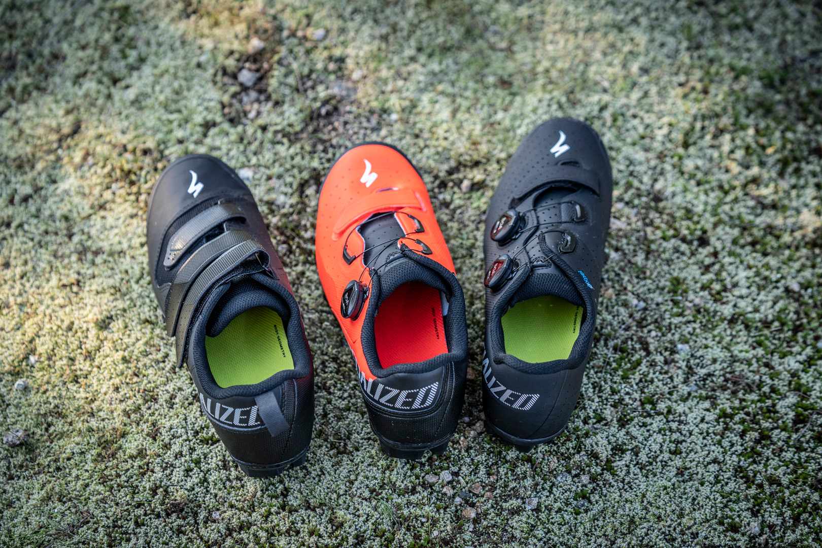 The shoes come in a tier of performance – with the Recon 3 nearest to the super-light, super-stiff S-Works shoe. The Recon 3 gets a pair of BOA dials and a carbon sole ‘inspired by the Pave seatpost’ – which means that it’s stiff, but still flexes. The second model gets a single BOA dial for the Recon 2 with a forefoot Velcro strap while the entry level Recon 1 gets three Velcro straps.