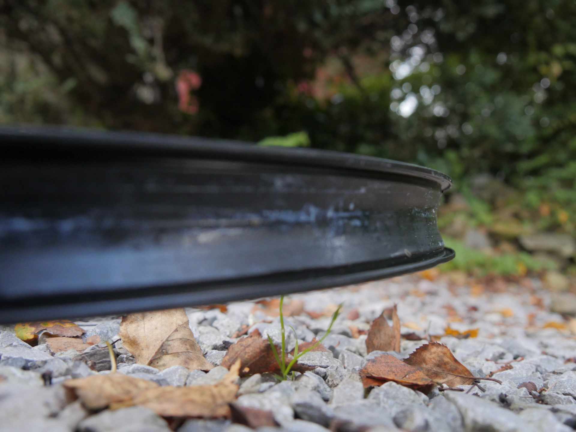 This has included a high speed front flat in a rock-filled gully, leading to multiple big dings as I came to a stop. On another descent, I’ve been experimenting with different lines in a pair of alternating corners, and one grassy line concealed an enormous sniper rock. It rang that front rim like a chuffing bell, and I was incredulous to find the bike still rolling, they tyres still up, and at the next gate, absolutely no signs of any trauma to the rim.