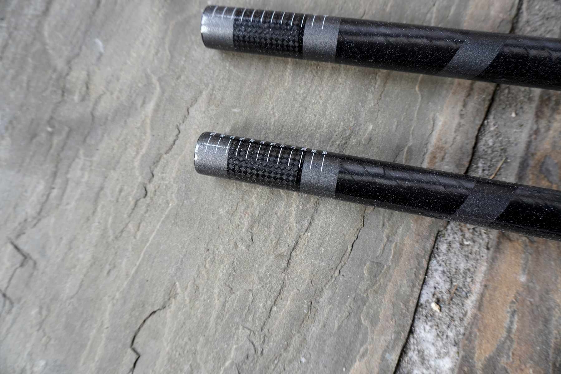 There’s a whole heap of science that’s gone into these bars, but in short there are 31.8mm and 35mm options, carbon and alloy, 12mm 25mm and 38mm rise options, all with a 9° backsweep and 5° upsweep. Choices!