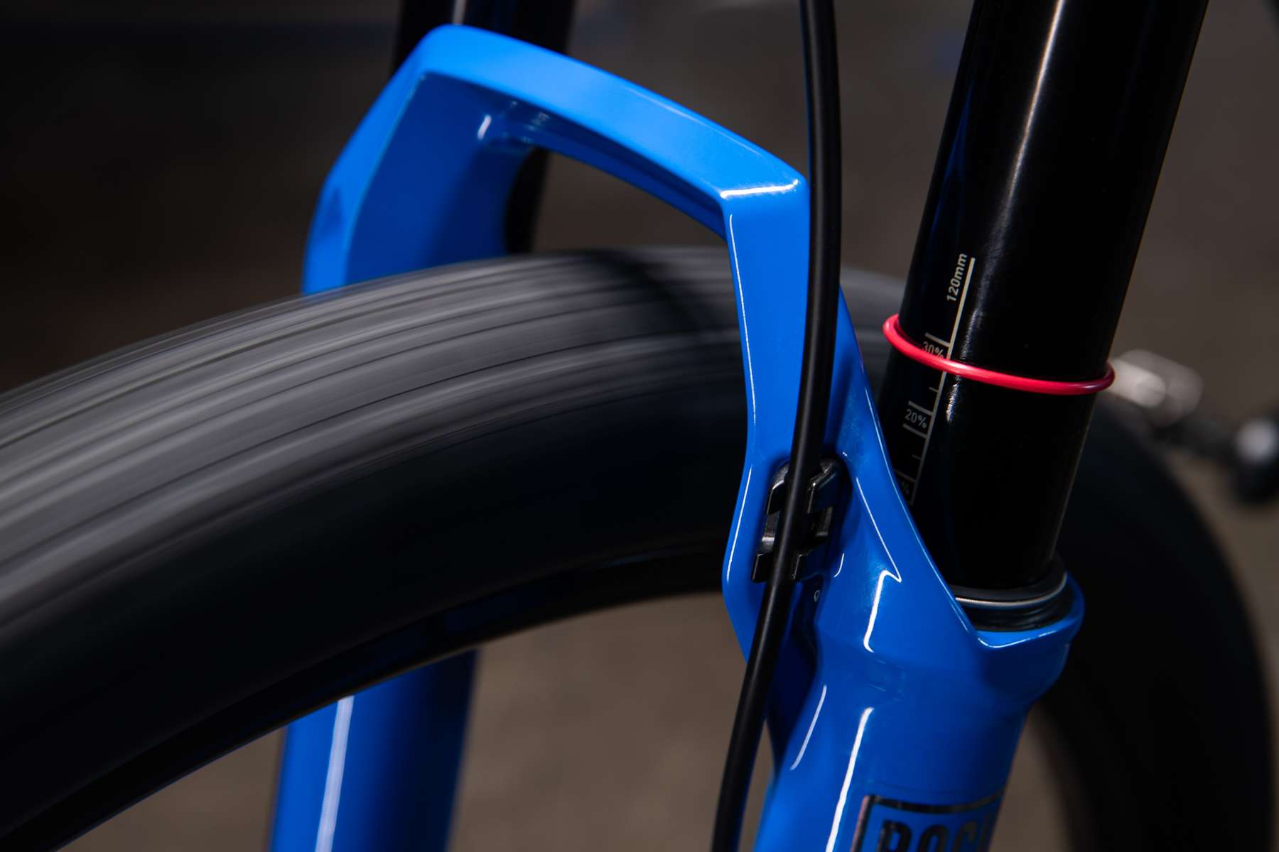 The new RockShox SID also comes in two versions; the Ultimate and Select. The SID Ultimate features the Race Day Charger damper, a less carved away 35mm chassis and crown and a bolt-on mud fender. It features 44mm offset and comes only in 120mm travel. Weight is 1326g (around 3.4lbs) which is still pretty light for a fork with the same stanchion size as a Pike.
