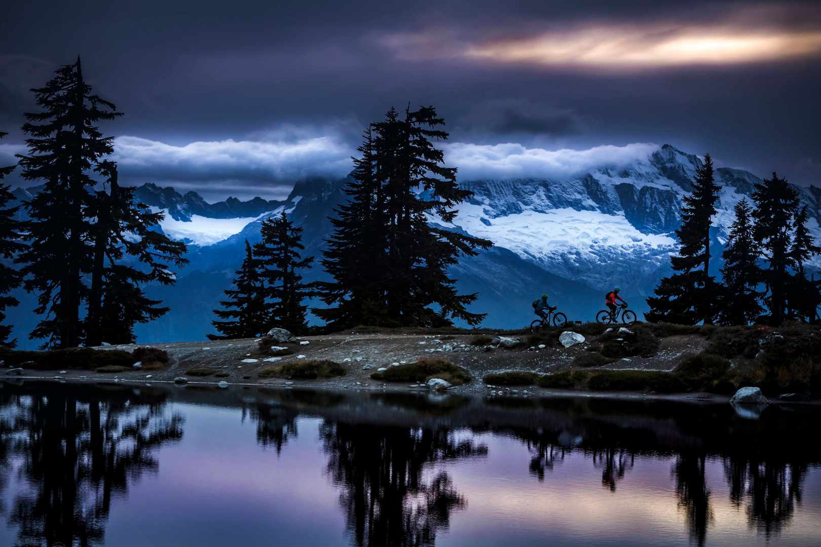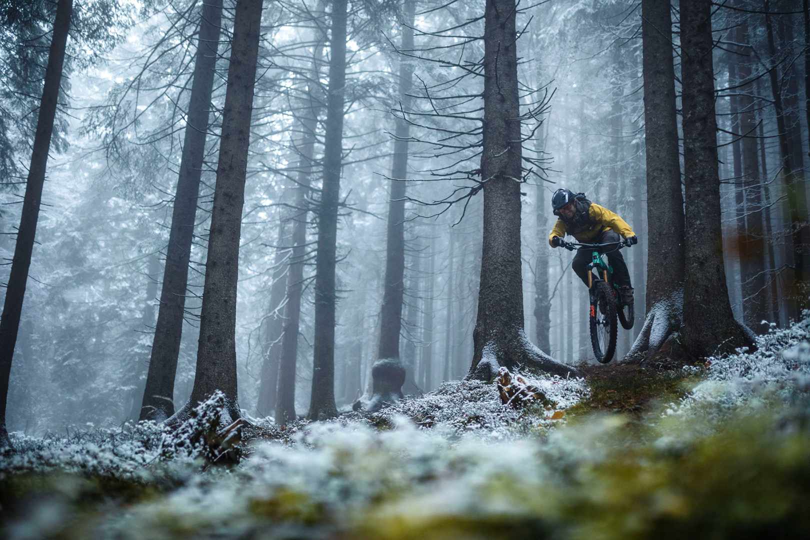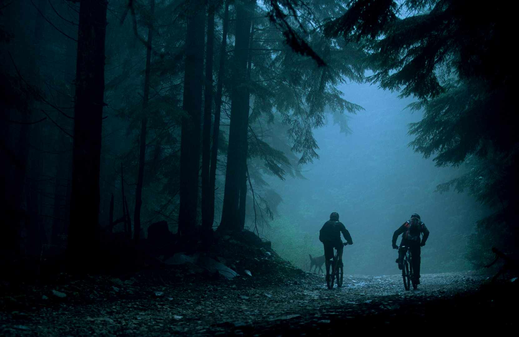 When riding in Vancouver, rainy days are more predictable than sun, but often more rewarding too. Here, a brief respite in the rain created a nice mist that drifted through the woods. That perfect contrast pool for me to help express the riders and the forest.
