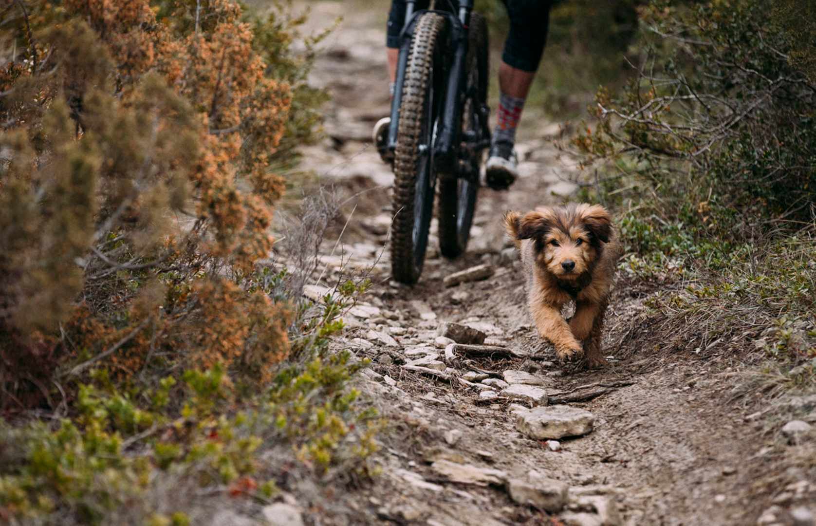 I was invited to Ainsa to photograph the launch of the new Specialized Stumpjumper. During one of our rides, Sean Estes noticed an adorable furry tag-along. Many attempts were made to persuade the puppy to turn back to wherever he came from as we were in a remote mountain range. It was evident that he was too stoked on our mountain bikes and stayed on our wheels. To ensure the safety and well-being of the pup, Sean rode back down to the bottom of the mountain alongside our new friend to meet up with two other Specialized staff members, Todd and Suzanne. They named him Jamón, drove around the base of the mountain, and successfully reunited the puppy with his owners. We all miss you Jamón!