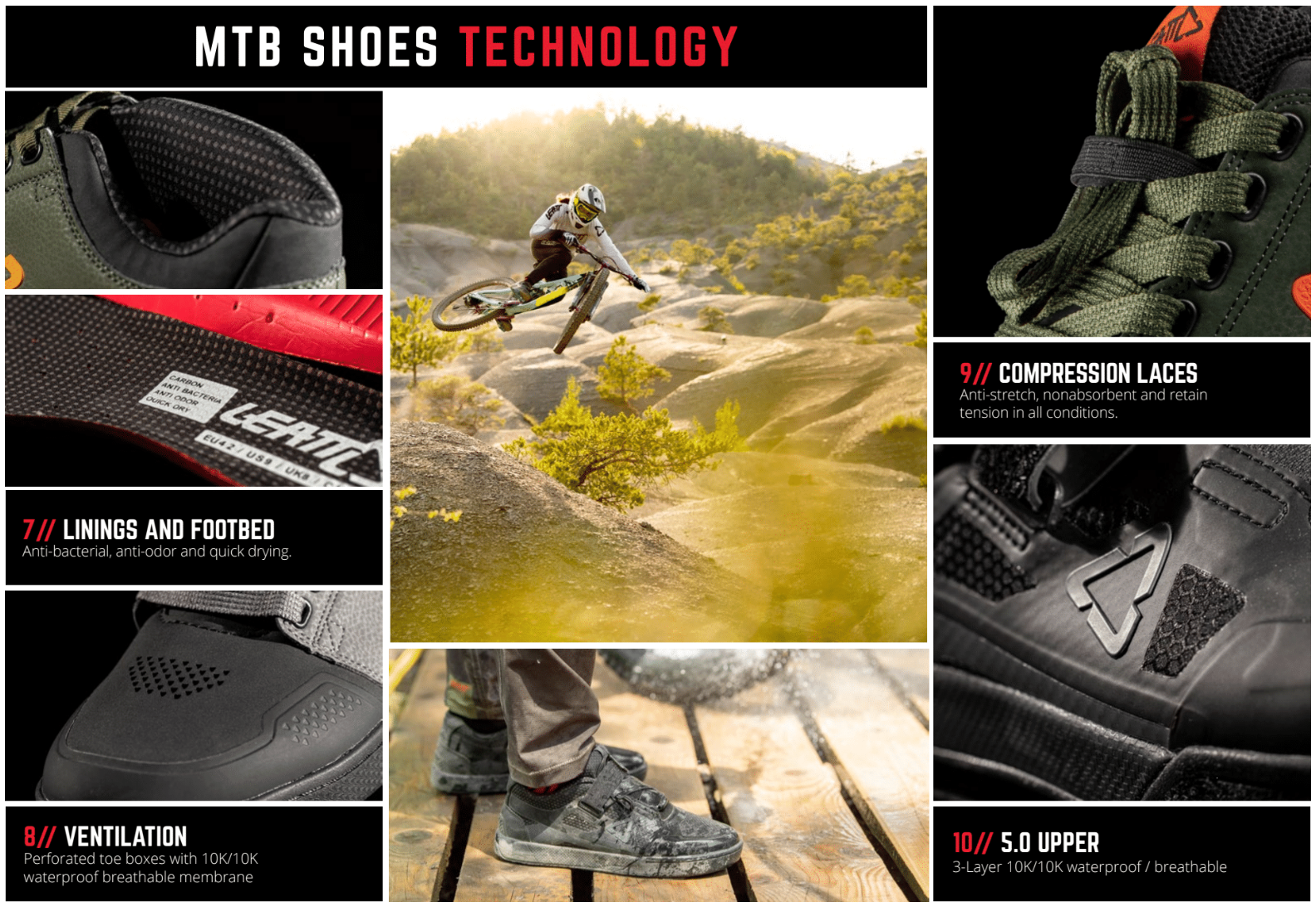 Leatt MTB shoes have been developed and tested on all terrains to create durable shoes that combine style, comfort and control.