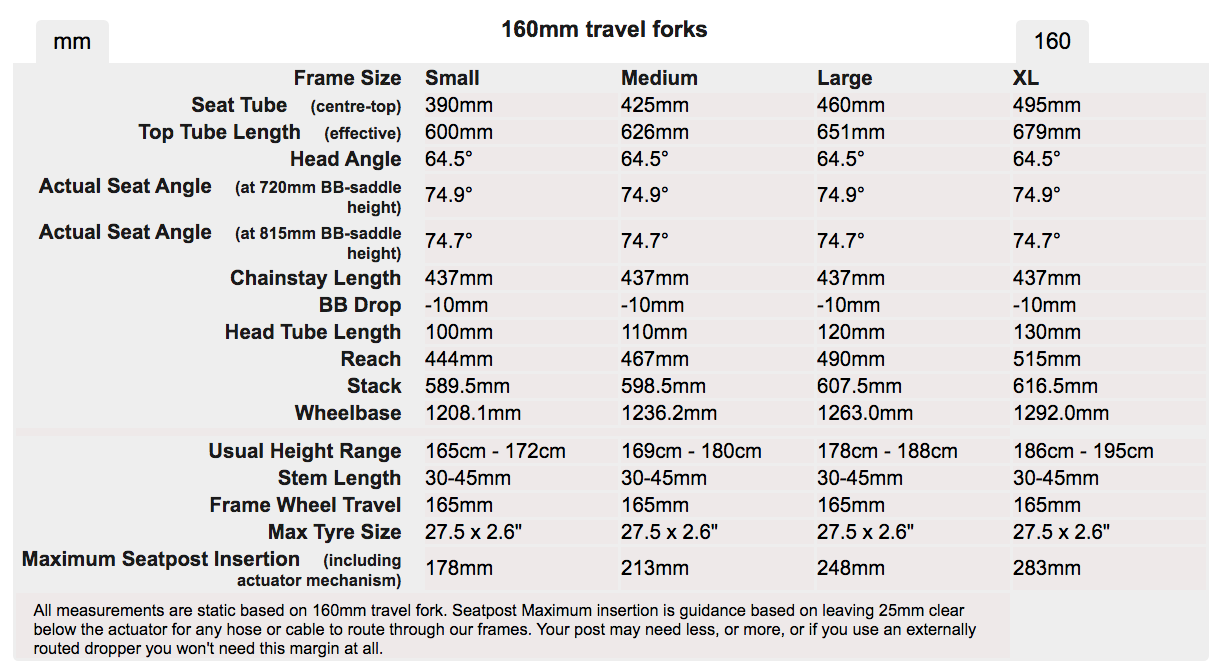 - Revised geometry with steeper seat angle and longer reach to better suit the longer travel.